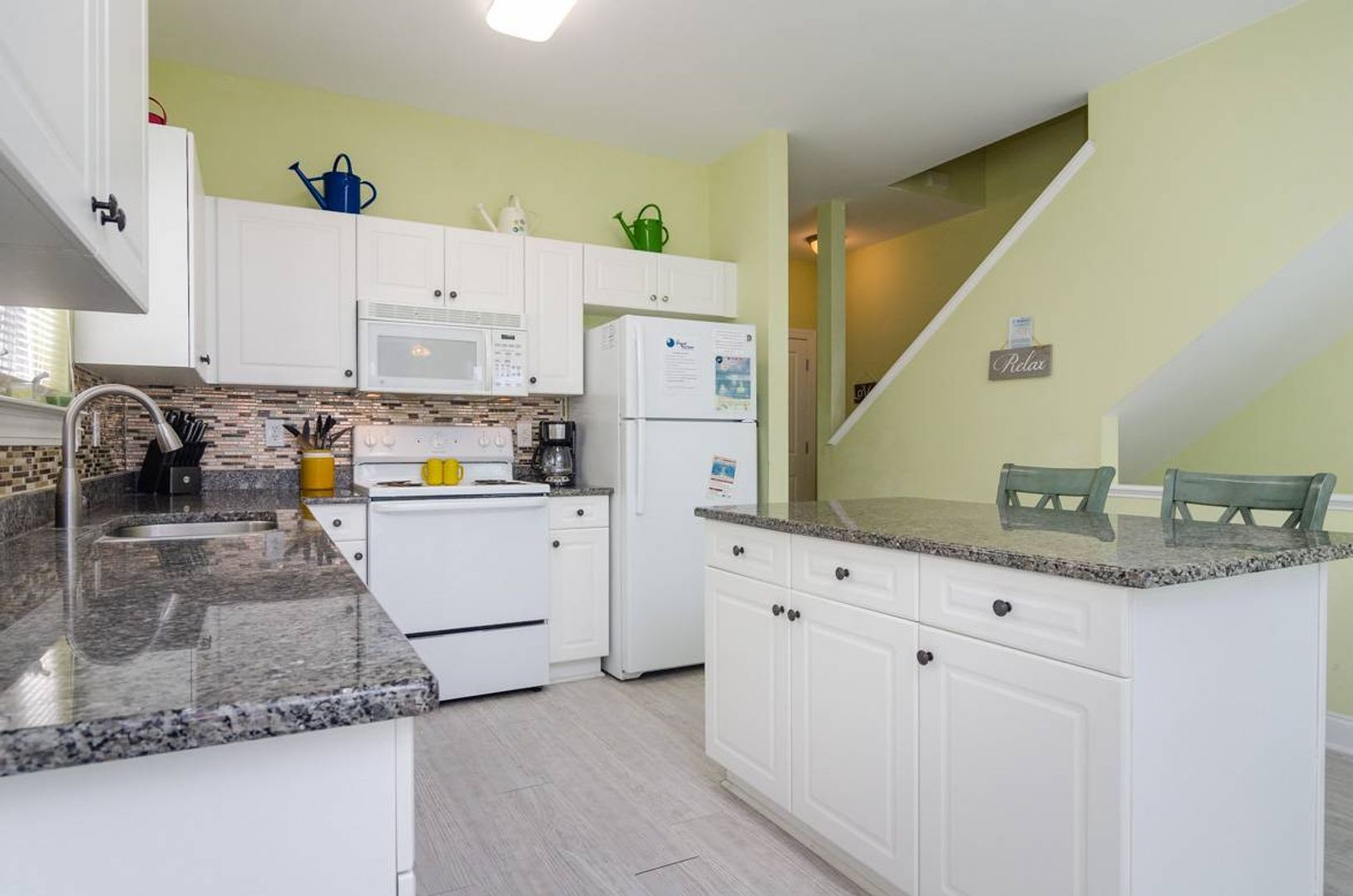 The carport of “Ocean Peek” offers a grilling and outdoor dining area. Your family will love spending time outdoors, grilling fantastic dinners in the salt air, dining with the sunset, and relaxing in this area. Set in a residential area, this home offers the ability to escape from the hustle and bustle of the island while still offering the ease of accessing the beach. Don’t miss your chance to make cherished family memories in this beautiful area!