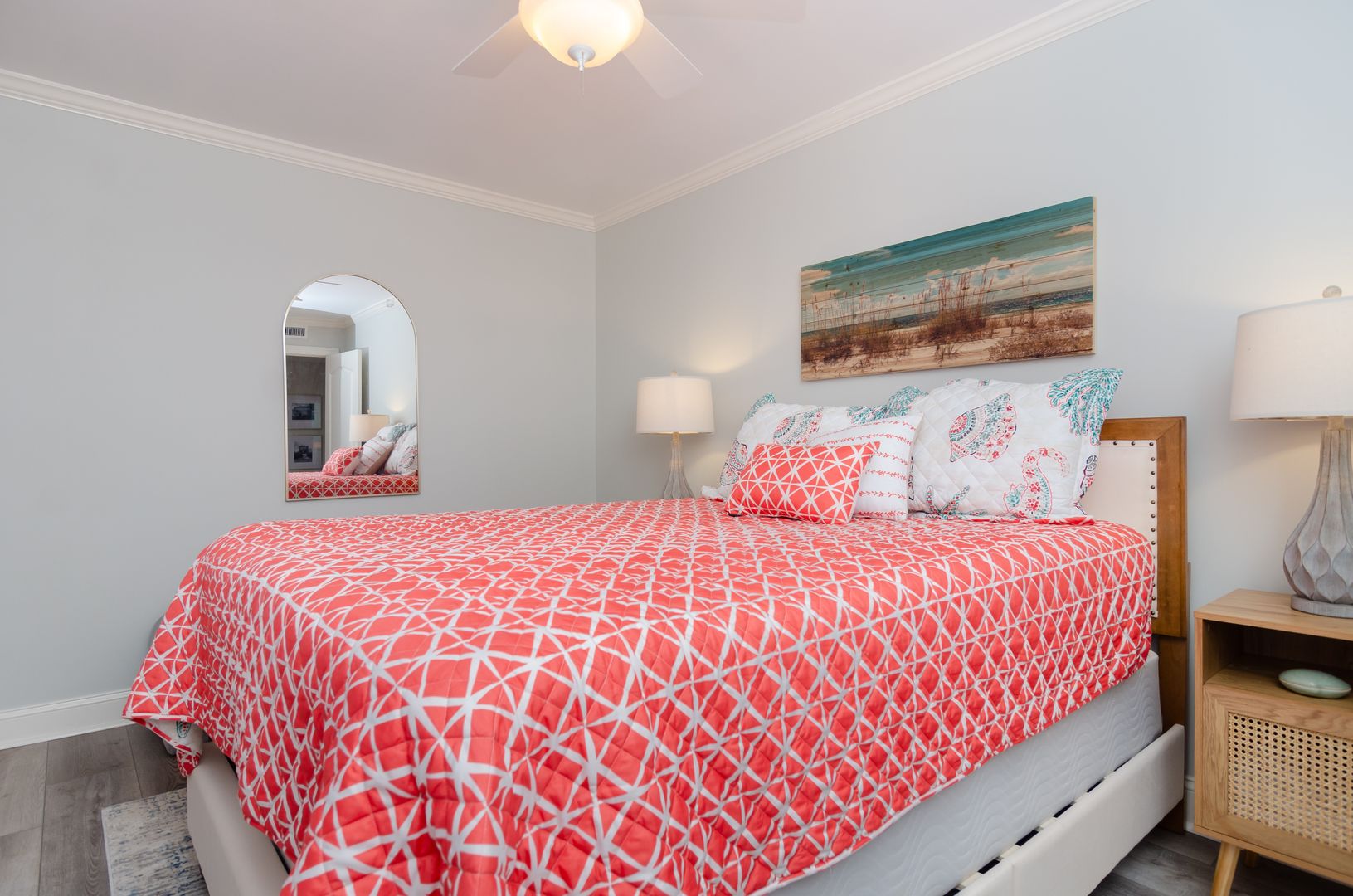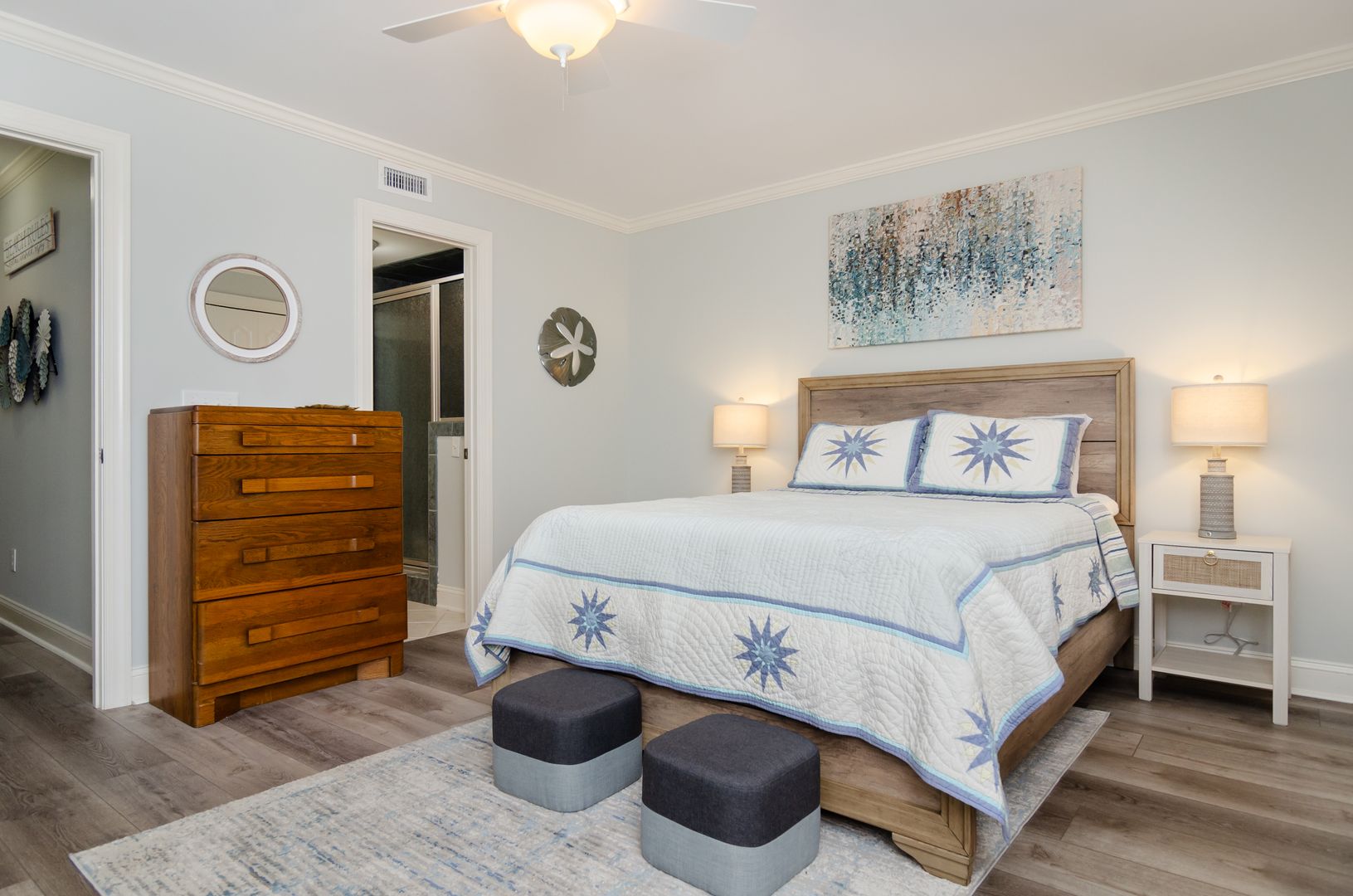 “Breezeland #1 Lower” is a middle floor apartment that is located at the desirable southern end of the island on a quiet street and features 3 bedrooms, 2 bathrooms, sweeping ocean views, and two large, covered porches that offer water views. Guests will find everything they need within walking distance! Enjoy the convenience of the famous Oceanic Restaurant and Crystal Pier for a sunset dinner or drop by SunDays Coffee Shop for an early morning cup of joe.