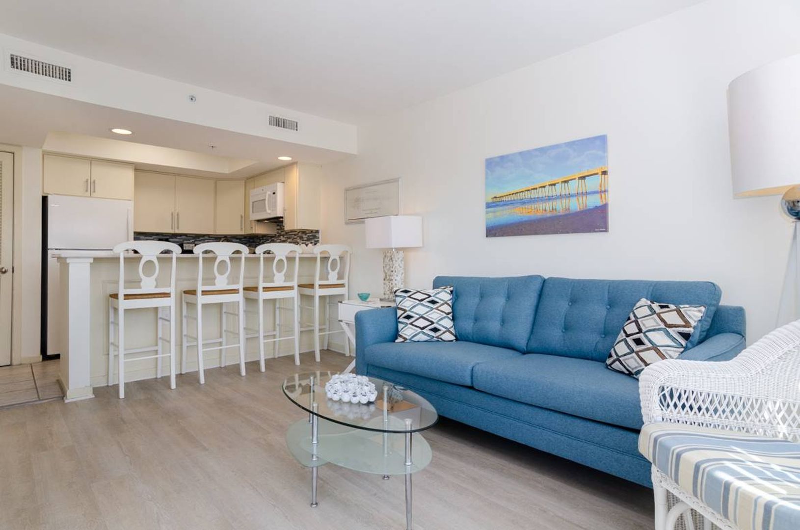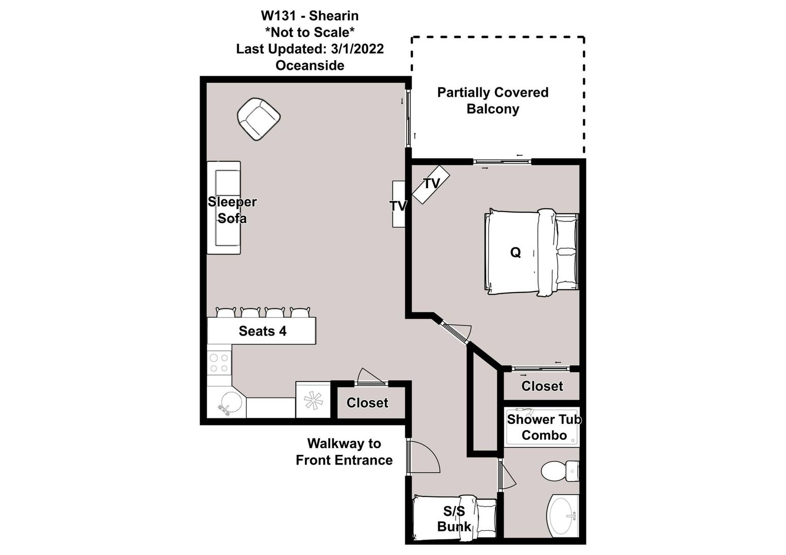 This nicely appointed and updated condo is on the second floor in the complex, A Summer Place, and offers one bedroom, one bathroom, and built-in bunk beds. The primary bedroom is furnished with a queen bed and provides direct access to the deck. The open living and kitchen area has nice updates, a queen size sleeper sofa, access to the deck, and bunk set in the nook off the entry.