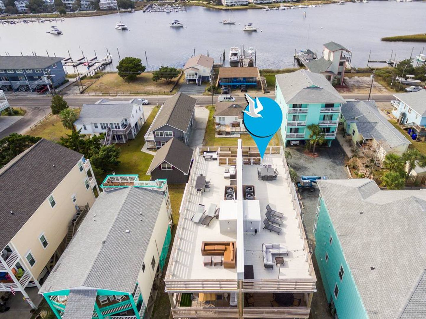As much as you will enjoy the inside, this home really beckons you to be outside. With furnished decks on every level, and a spectacular rooftop terrace, you'll be spending almost all of your time soaking in the beautiful scenery. Imagine gorgeous sunrises over the Atlantic, where you might get lucky enough to catch a pod of dolphins playing in the early morning. Then, after a fantastic day at the beach you'll come home in time to catch the sun slipping away over the harbor basin filled with sailboats and fishing vessels.
