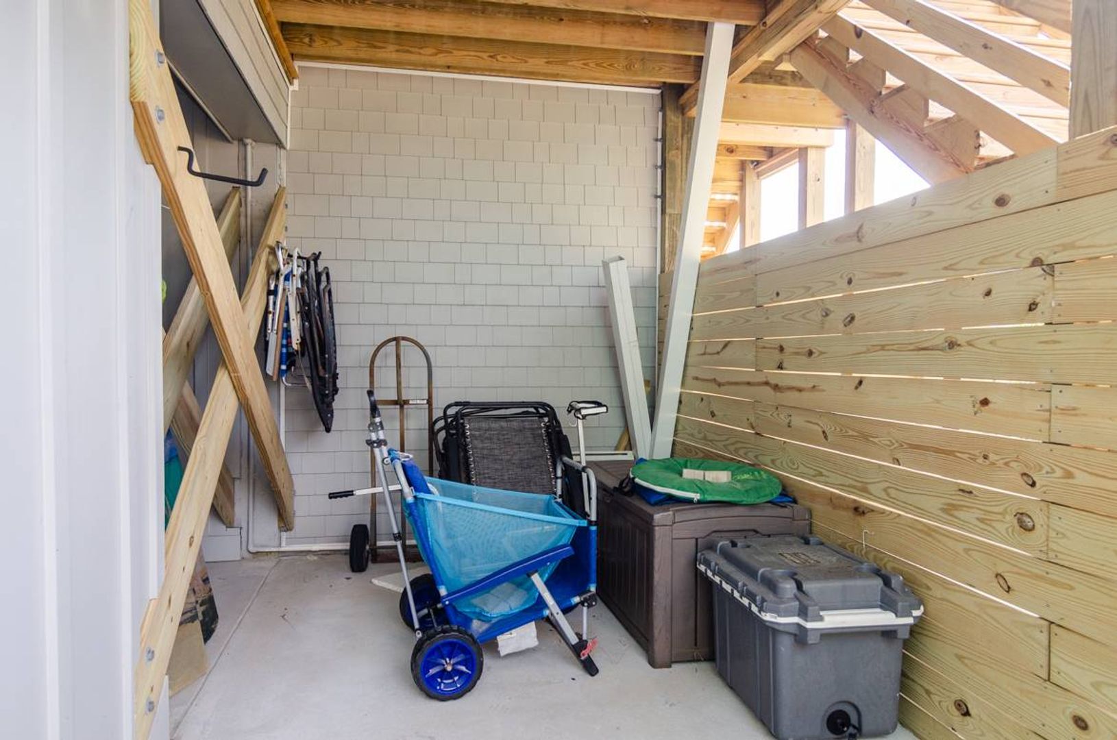 The storage room below includes a few fun amenities to utilize during your stay. The fenced in yard makes a nice play area for the little ones, or a central grilling station for the flame inspired chef of the family.