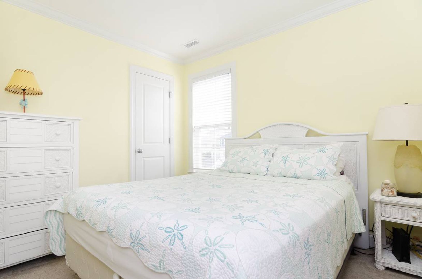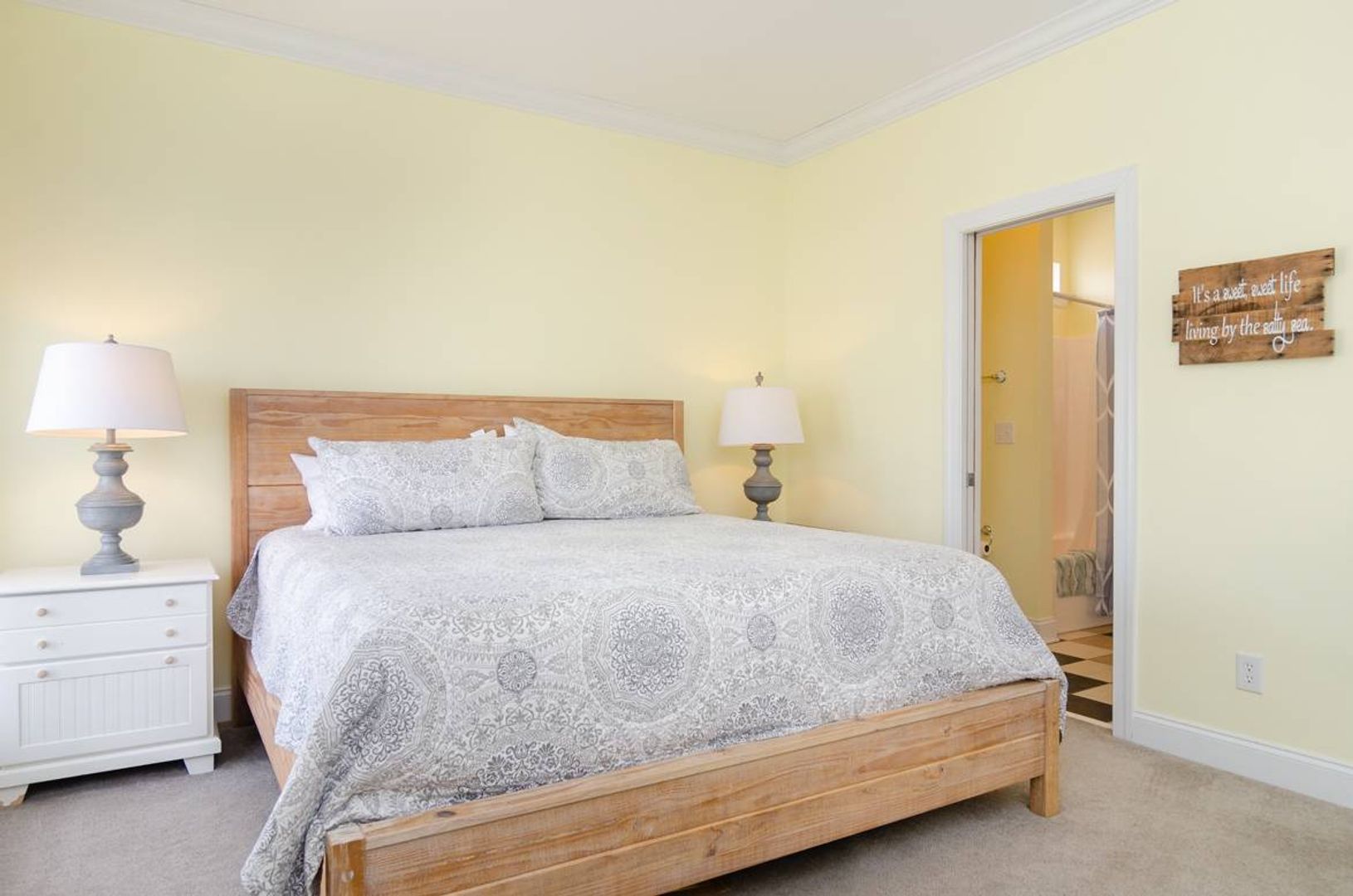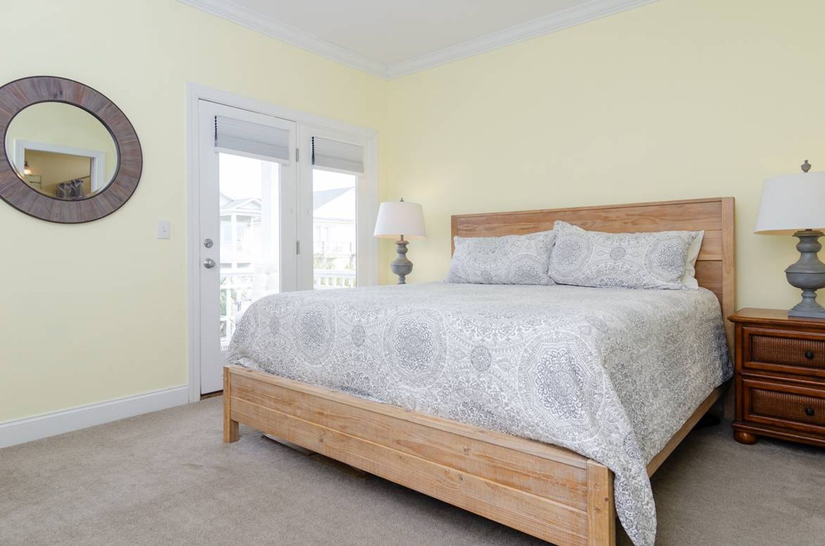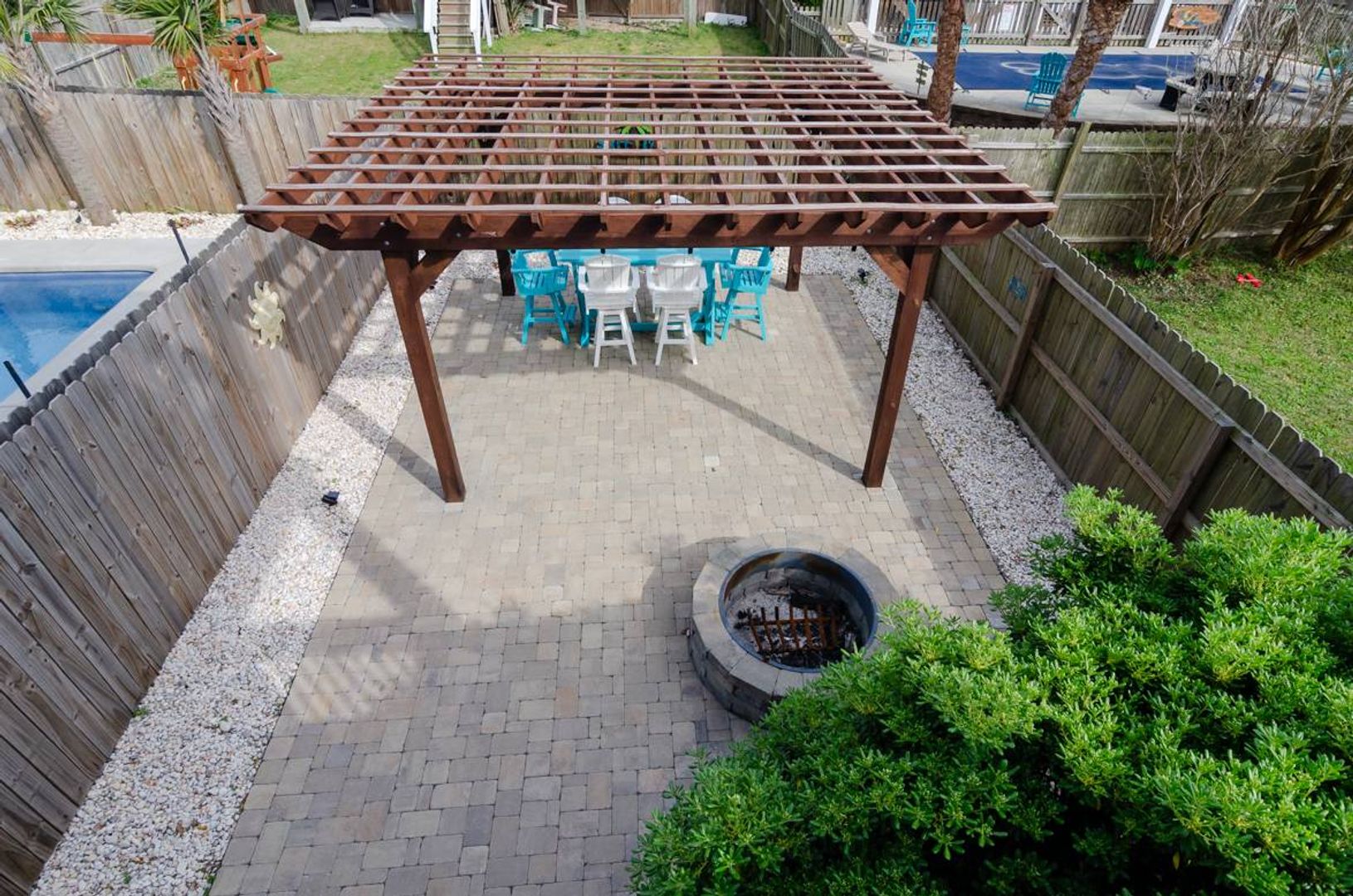 With 4-bedrooms, 3-bathrooms, and fabulous outdoor entertaining area that includes a wood burning fire pit make this townhome the perfect setting. This home is 1 block away from the beach access and has multiple covered decks and an outdoor entertaining space. As you enter the home through the foyer you are led to the first living level where the sleeping quarters are found. The back bedroom is furnished with a pyramid bunk bed that is a twin bed over a full bed. The second bedroom is a quaint guest bedroom that offers a cozy queen-sized bed and shares direct access to the hall bathroom. A junior primary suite with a plush king bed is located down the hall and is complete with a private on-site bathroom and deck. The upstairs has an open floor plan with a living area, kitchen, and full bathroom that is shared with the primary suite furnished with a king bed and private deck overlooking the back yard. Spend evenings grilling under the pergola, soaking in the salt air, and roasting marshmallows by the fireside. Tasteful string lighting sets the mood and provides ambient light in the evenings. There is a small outdoor refrigerator for added convenience. Ample outdoor seating and a built-in wood burning fire pit make this the best hangout spot in the house!