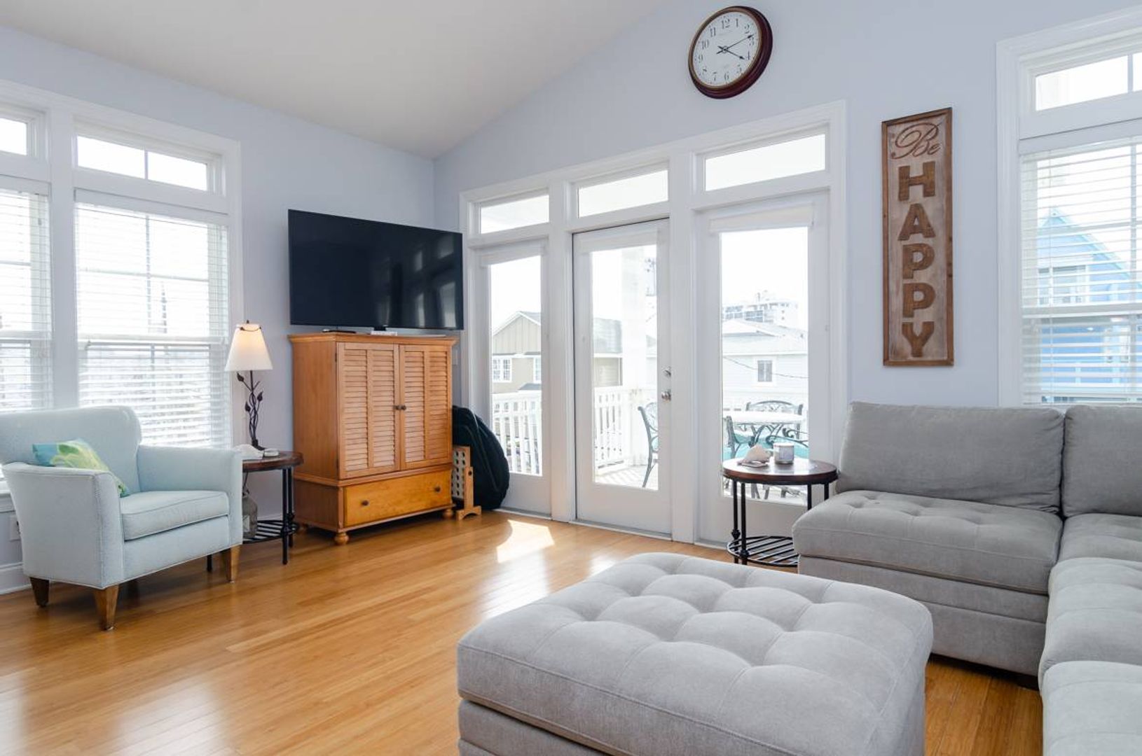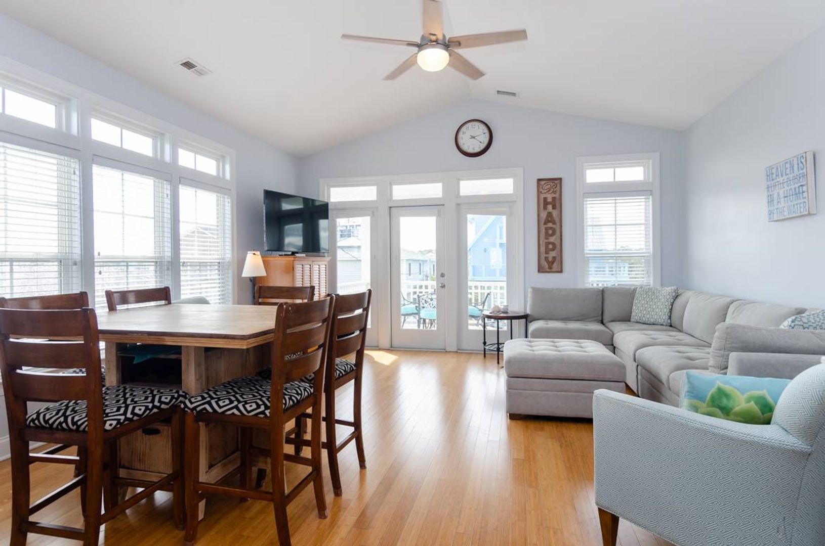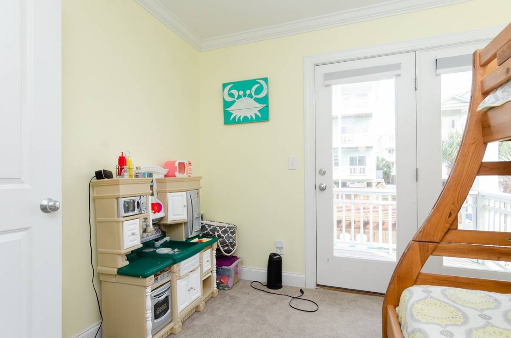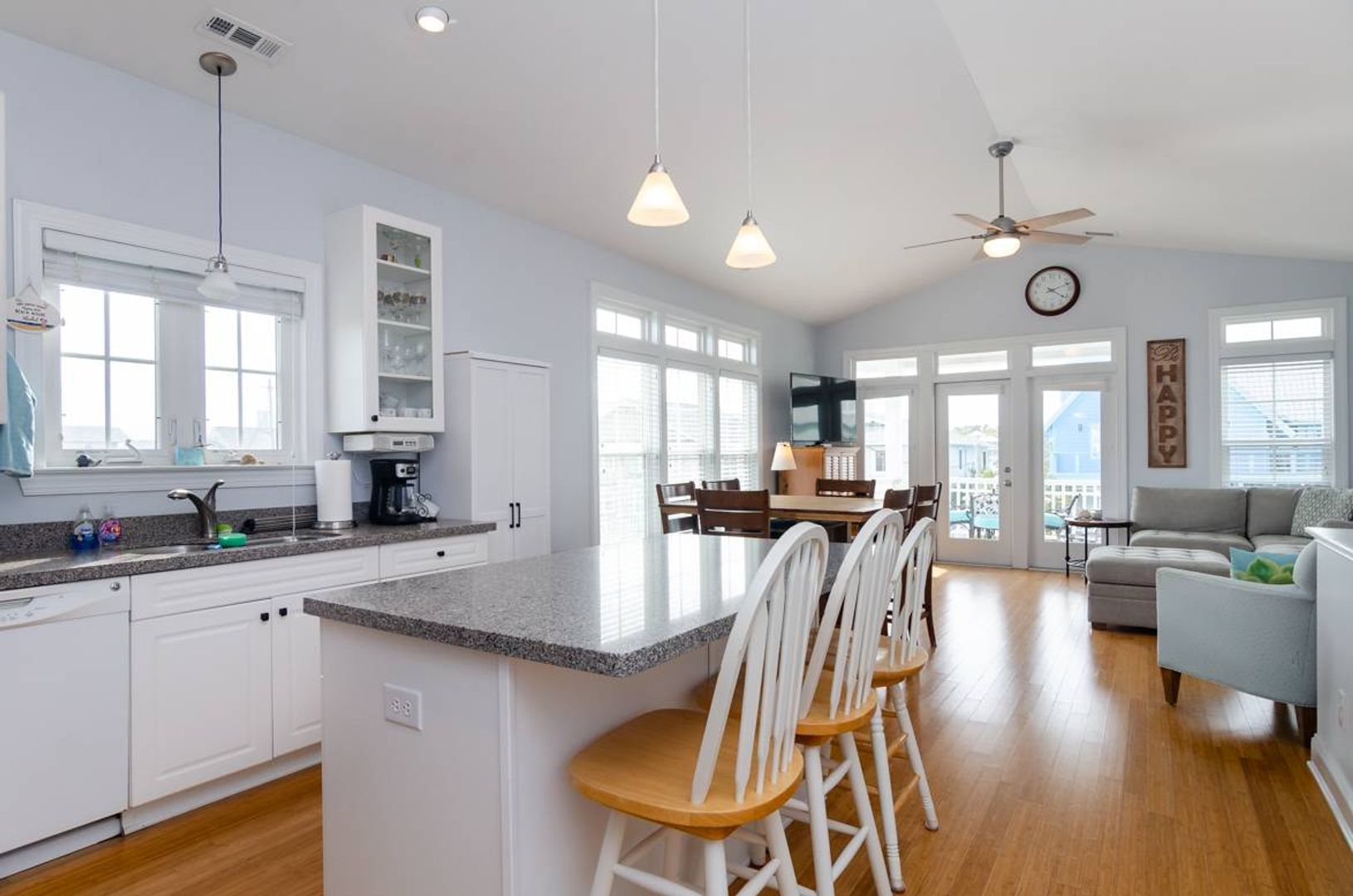 With 4-bedrooms, 3-bathrooms, and fabulous outdoor entertaining area that includes a wood burning fire pit make this townhome the perfect setting. This home is 1 block away from the beach access and has multiple covered decks and an outdoor entertaining space. As you enter the home through the foyer you are led to the first living level where the sleeping quarters are found. The back bedroom is furnished with a pyramid bunk bed that is a twin bed over a full bed. The second bedroom is a quaint guest bedroom that offers a cozy queen-sized bed and shares direct access to the hall bathroom. A junior primary suite with a plush king bed is located down the hall and is complete with a private on-site bathroom and deck. The upstairs has an open floor plan with a living area, kitchen, and full bathroom that is shared with the primary suite furnished with a king bed and private deck overlooking the back yard. Spend evenings grilling under the pergola, soaking in the salt air, and roasting marshmallows by the fireside. Tasteful string lighting sets the mood and provides ambient light in the evenings. There is a small outdoor refrigerator for added convenience. Ample outdoor seating and a built-in wood burning fire pit make this the best hangout spot in the house!