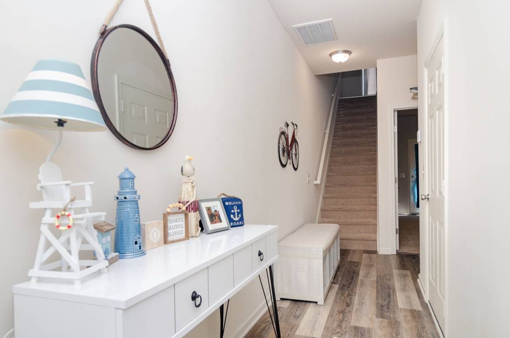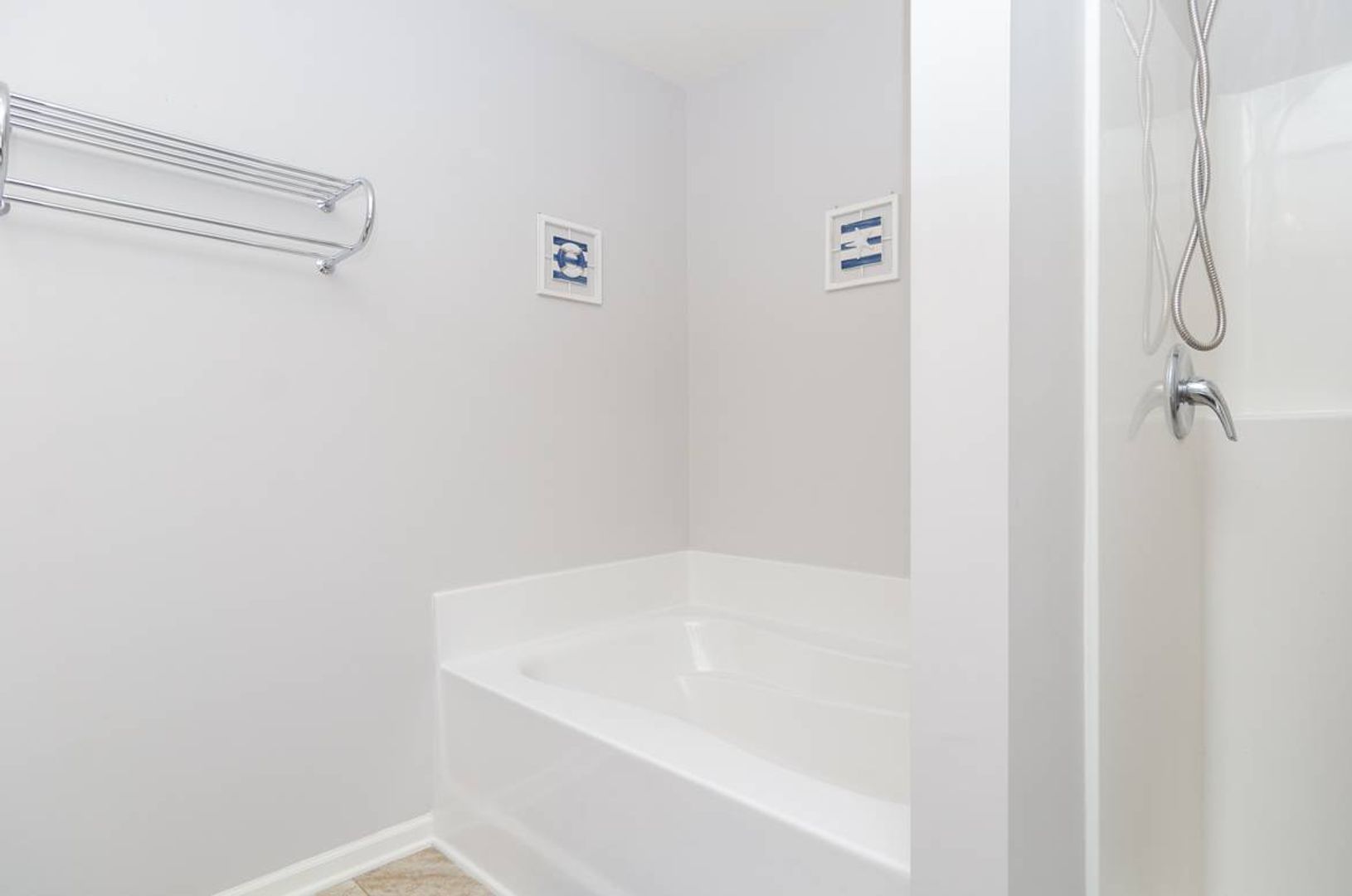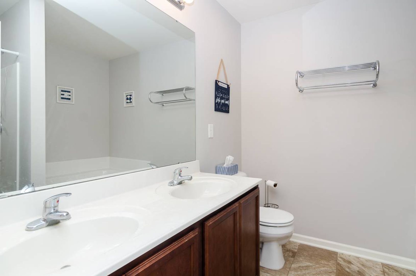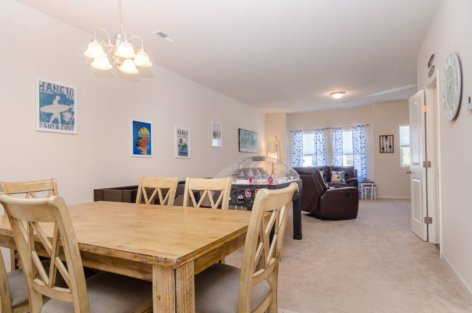 As you enter into the foyer of the property, garage access for storage is located on the right. There is one bedroom with a two queen beds and a full bathroom with a shower/ tub combo. This room also has access to an outside patio and fenced in yard. The second floor of the property is comprised of the kitchen, dining, and living areas with a half bathroom. The third level has the remaining two bedrooms. The first bedroom you arrive at has a Queen bed. There is a hall bathroom with a shower/ tub combo. The hallway to the primary bedroom houses the laundry closet. Once in the primary bedroom, you will find a King bed, TV, and en suite bathroom. The en suite has a double vanity, single shower, and soaking tub.