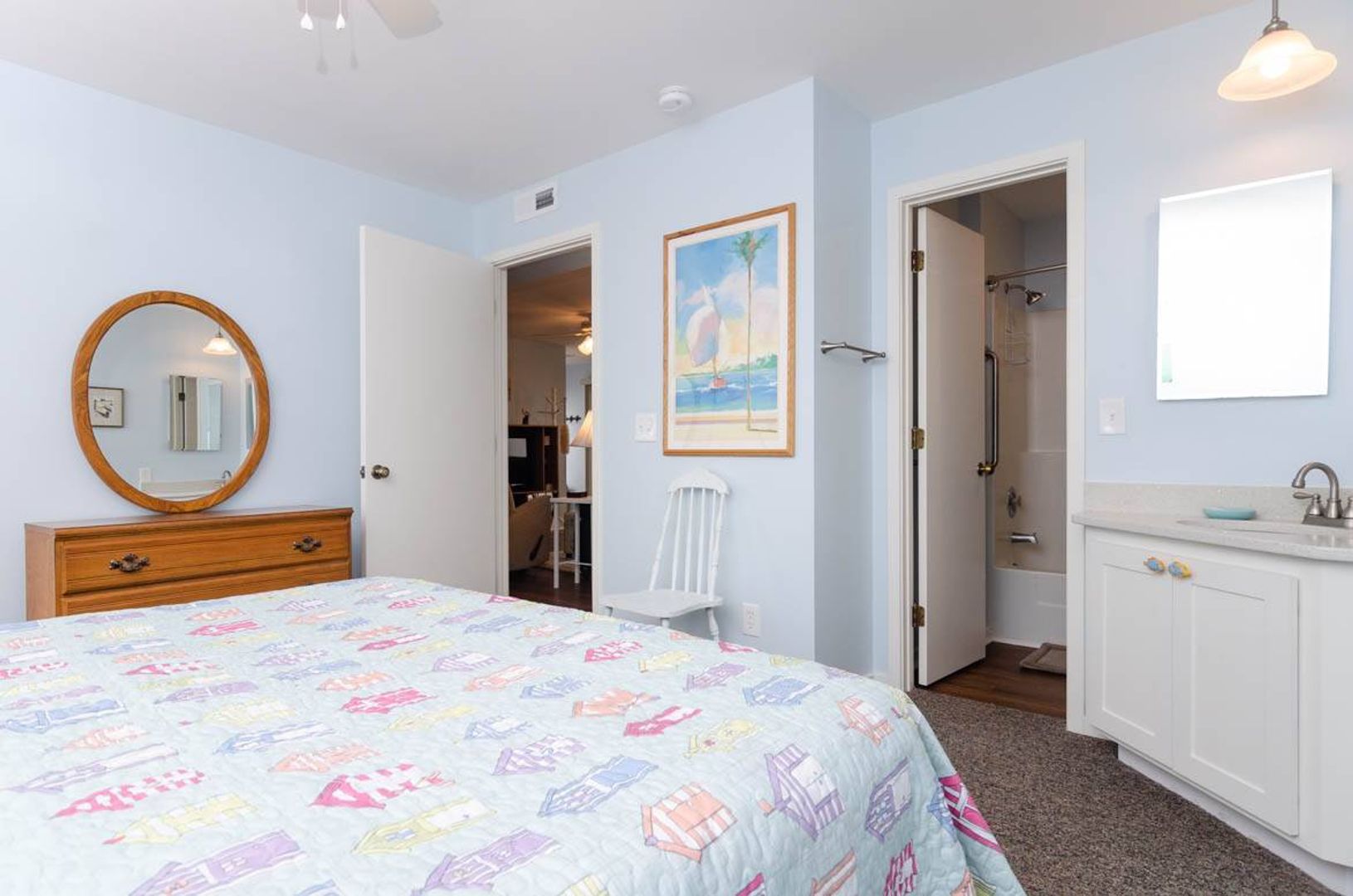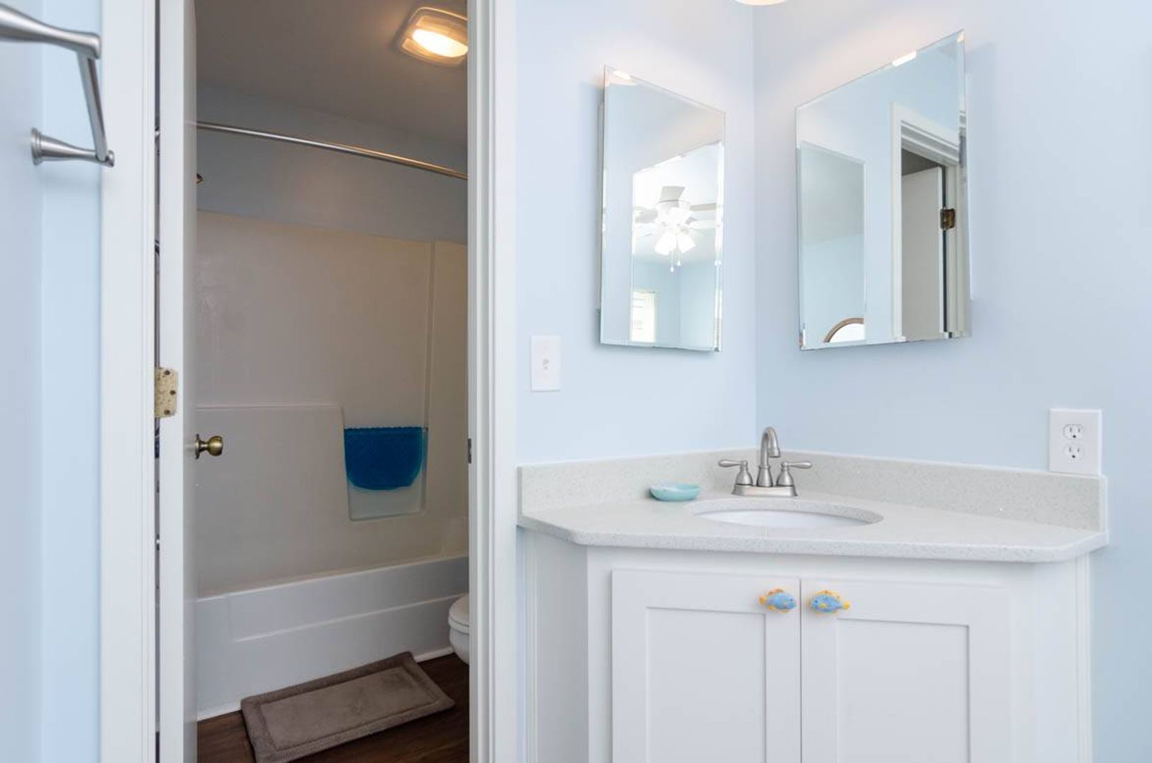 This home has an open kitchen dining and living area that also opens onto the covered porch for endless views of the Intracoastal Waterway. The living space is furnished comfortably, and the open space makes family time and meal prep very convenient for families. The master bedroom has a queen bed and private bathroom while the second bedroom is furnished with two twin beds and has shared access to the second bathroom.