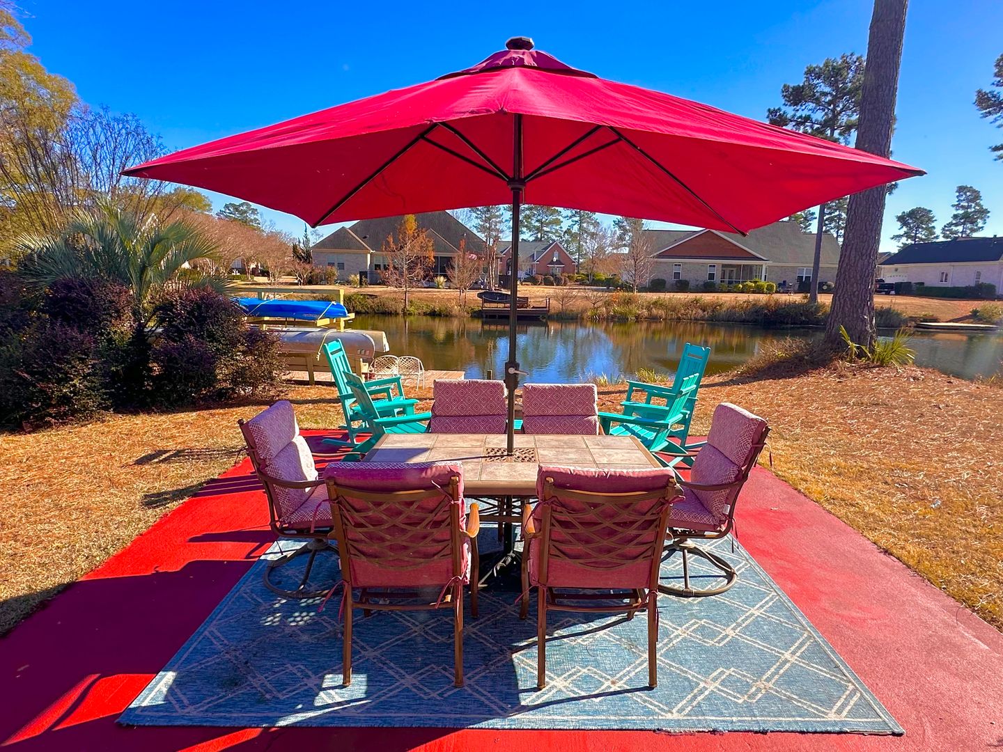 Welcome to 1108 Veranda Court. This charming 3-bedroom, 2-bathroom single family home offers a serene view of the pond/greenway from the screened in patio/dock, perfect for enjoying your morning coffee or evening relaxation. Charming outdoor dining area along with an outdoor firepit for tenant use. Located in the desirable Waterford community, residents have access to a seasonal community pool, tennis courts, volleyball court, clubhouse, basketball court, playground, fitness center, and pickleball courts. The 2-car garage provides ample parking and storage space. Enjoy fishing in the community's lake and channels or take a stroll along the walking and bike riding trails.