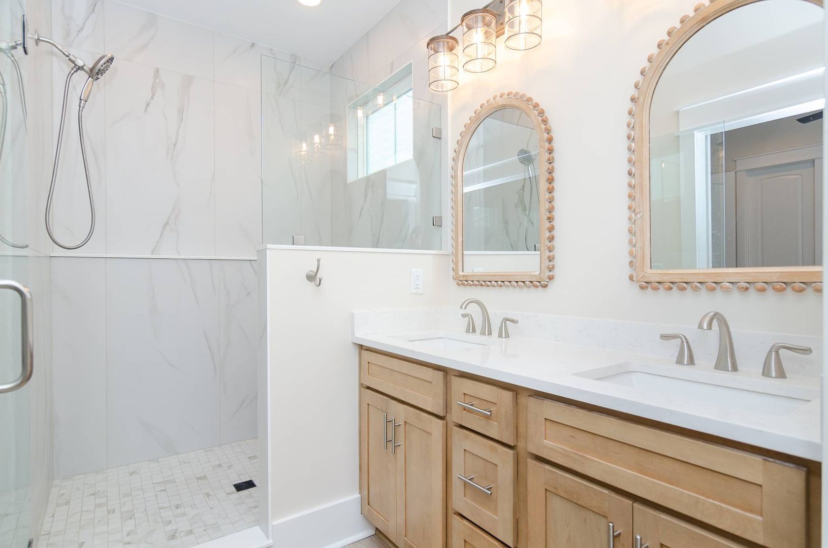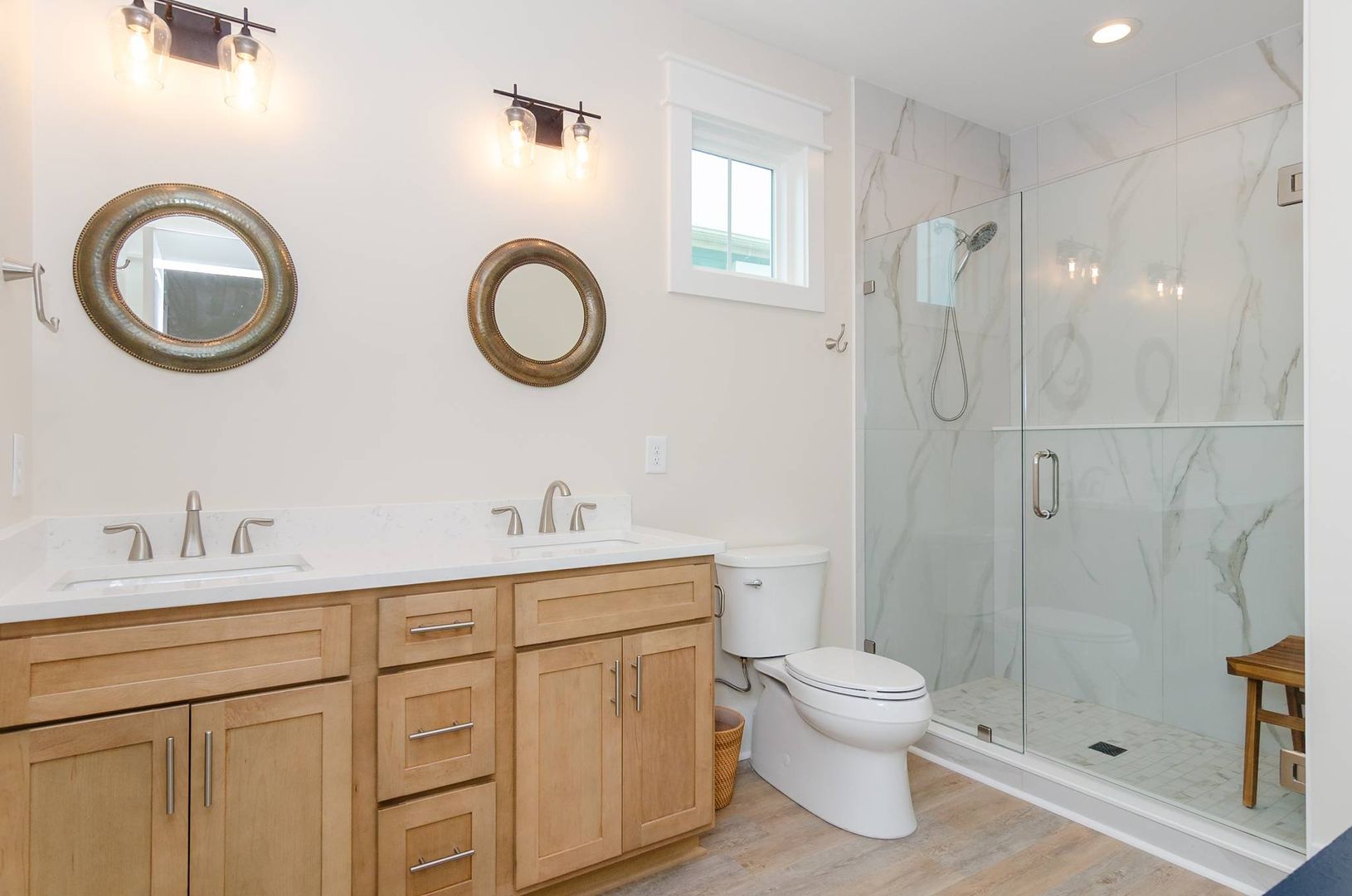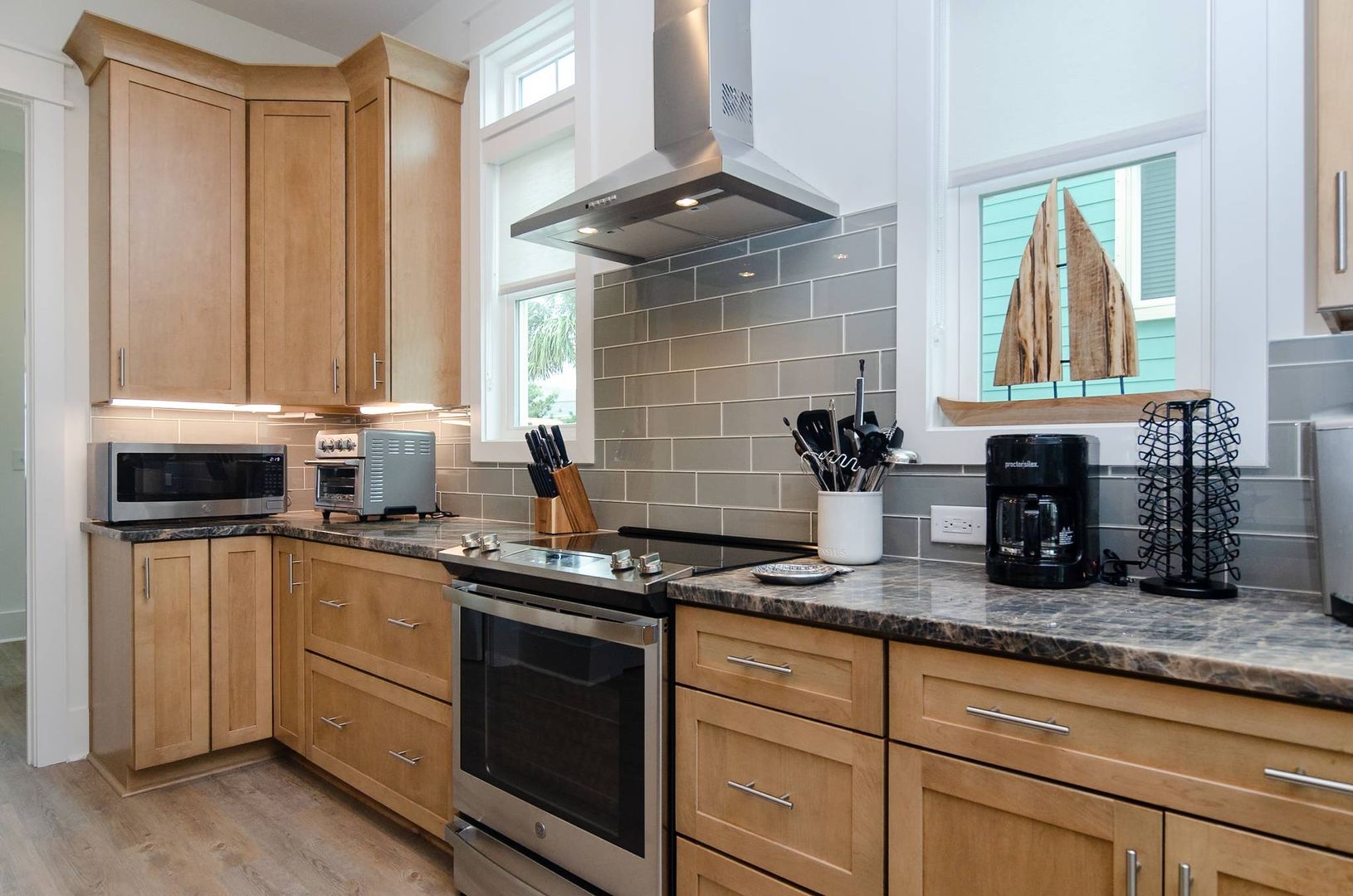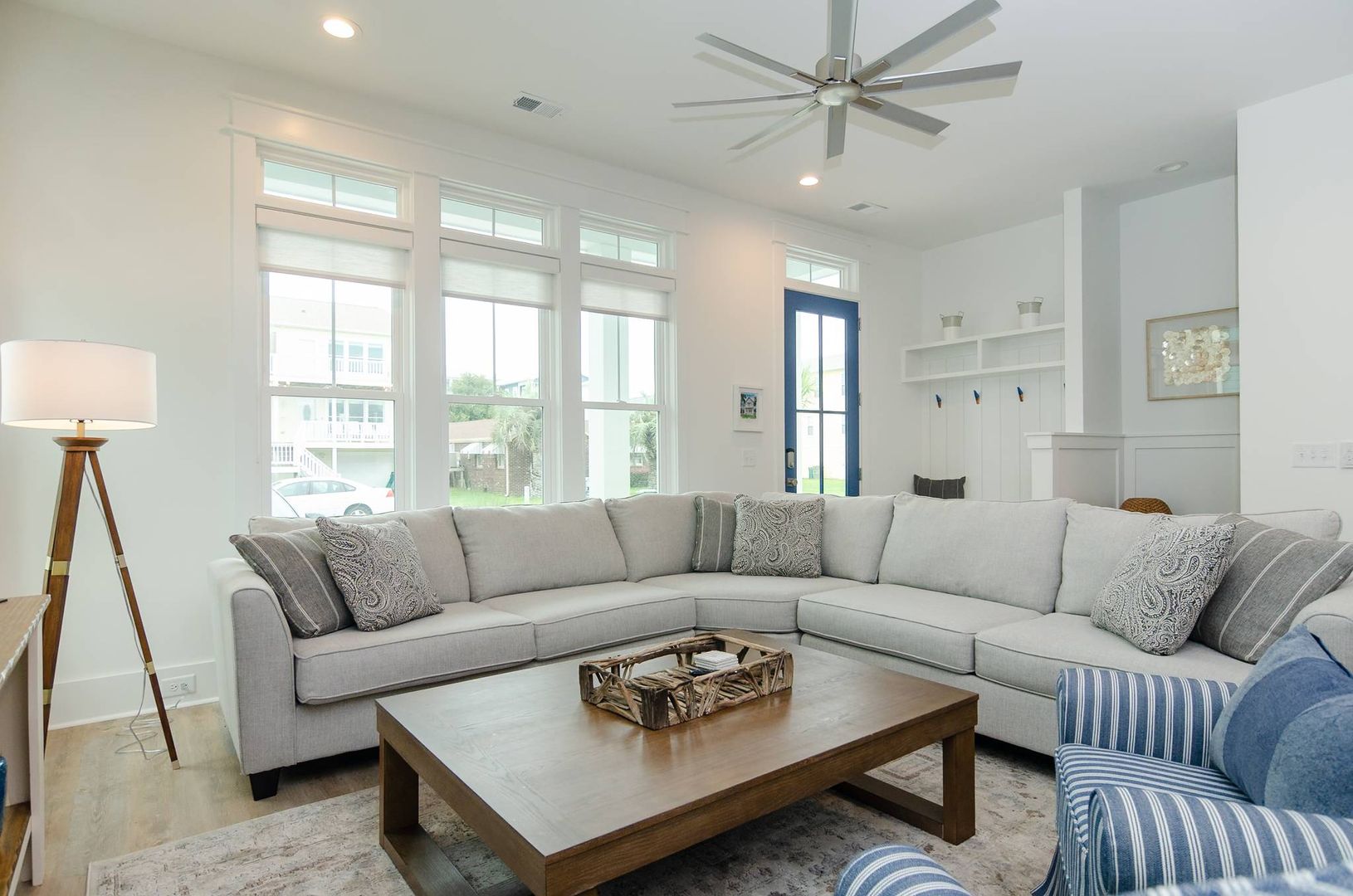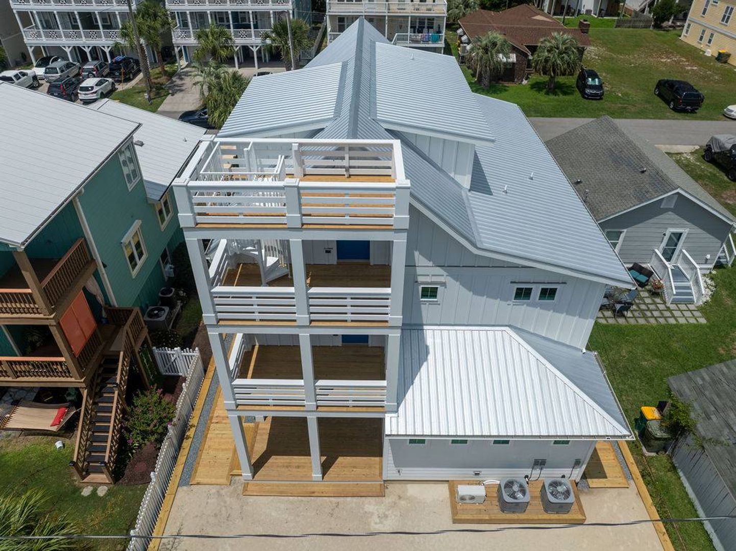 This magnificent new construction home features 6 bedrooms, 4 full bathrooms with two additional powder rooms that offers gorgeous ocean views. Conveniently located in the middle of Kure Beach, the public beach access is just around the corner from the home. This architecturally designed home was completed in August of 2024. As you enter you are welcomed by the by the open great room which features large windows that fill the room with natural light. The living room offers a cozy space and overlooks the stunning kitchen. Complete with a large eat in island and wine bar, the kitchen is outfitted with stainless steel appliances, quartz counter tops, stylish tile back splash, and offer plenty of storage. There is a laundry room off the kitchen that provides access to the backyard. A conveniently placed powder room located near the living room offers convenience to guests and their visitors. The main living level also features the primary bedroom which is furnished with a king-sized bed and includes an en-suite bathroom and shares access to the backyard. You will enjoy the upscale touches, dual vanity, walk in shower, and large walk-in closet offered by the primary suite.