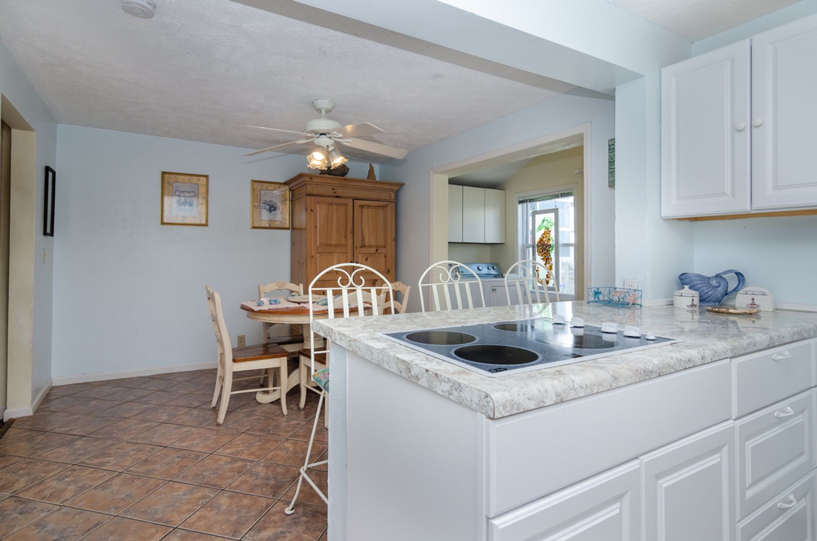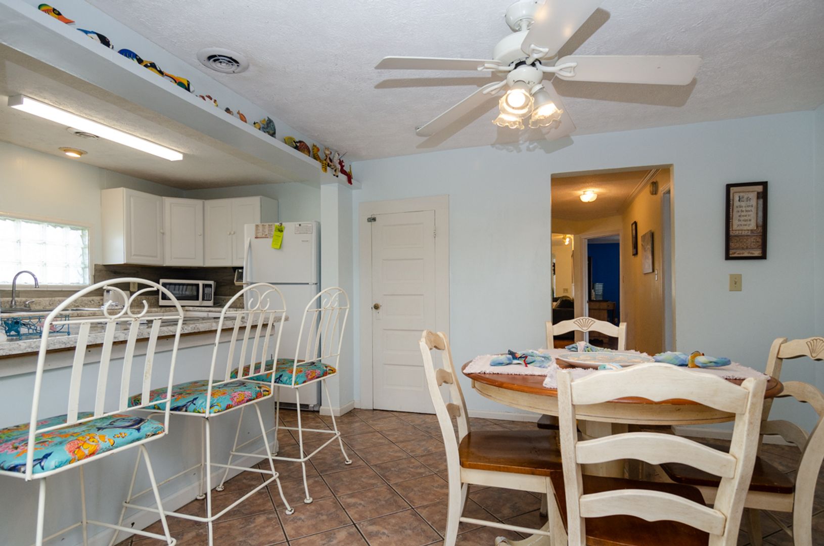 There are two full bathrooms and a well equipped kitchen to complete this home, along with a separate dining room that seats 4! The kitchen table also seats 4 and there are 3 barstools at the kitchen counter.