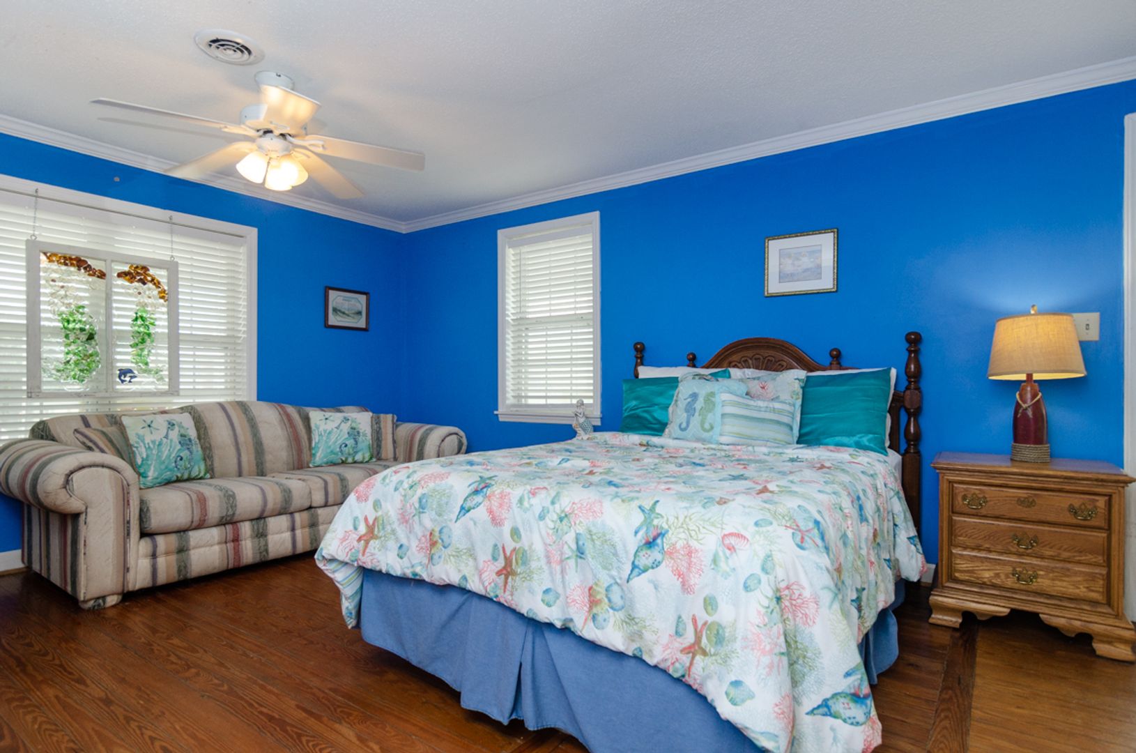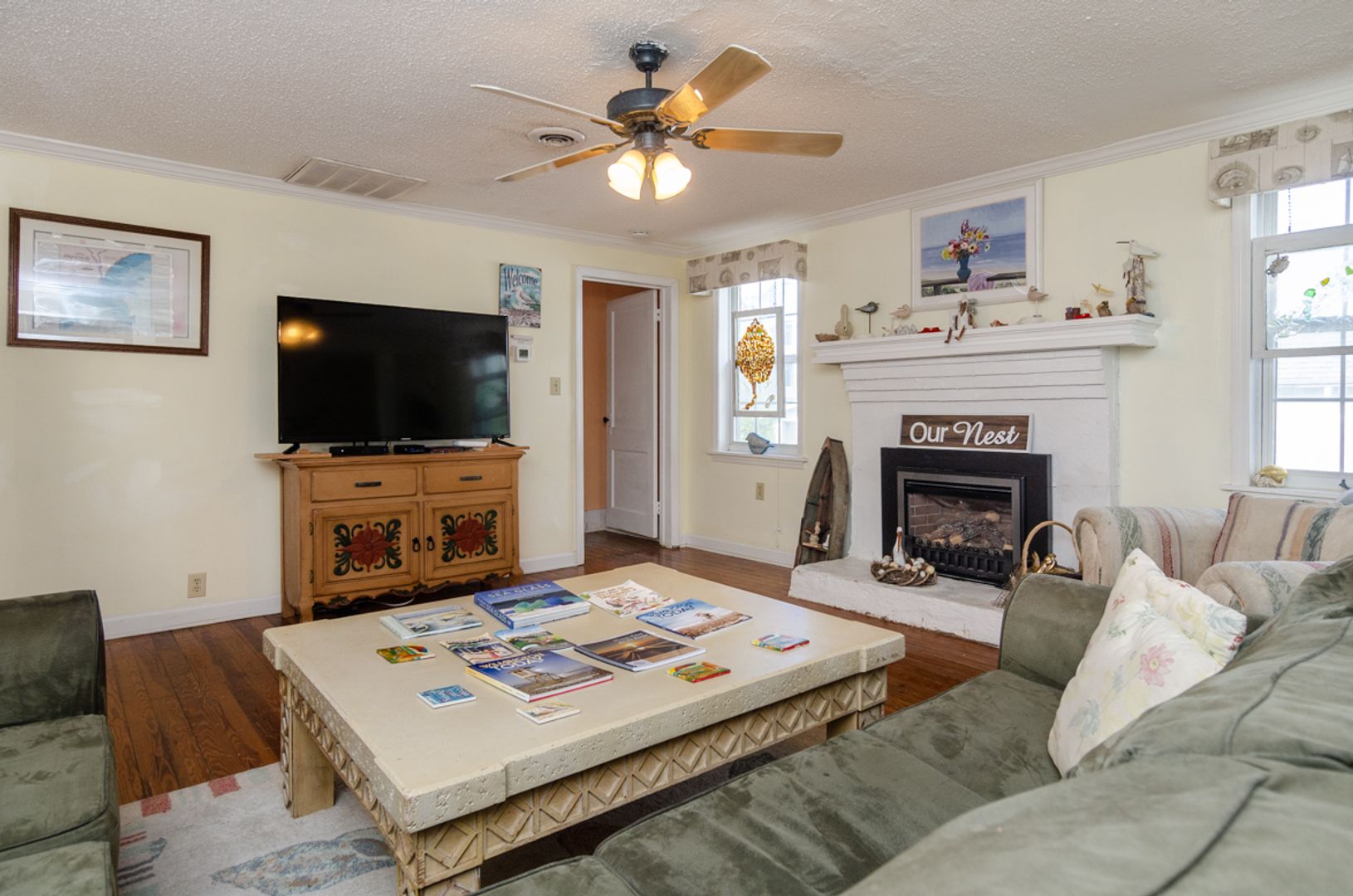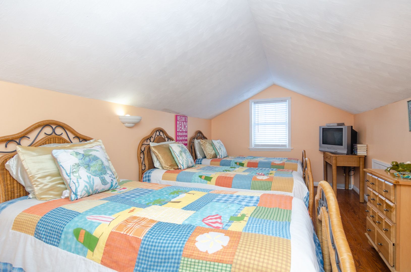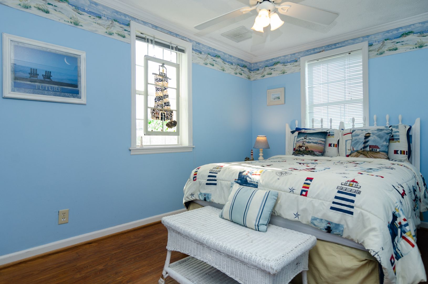 Who doesn't love a wrap-around rocking chair porch? This is a pet friendly home and you'll want to invest your time enjoying the close by beach access and rustic charm. There are two bedrooms located on the main level (both have a Queen bed) and two more upstairs (one with a Queen and the other with 3 Twin beds).