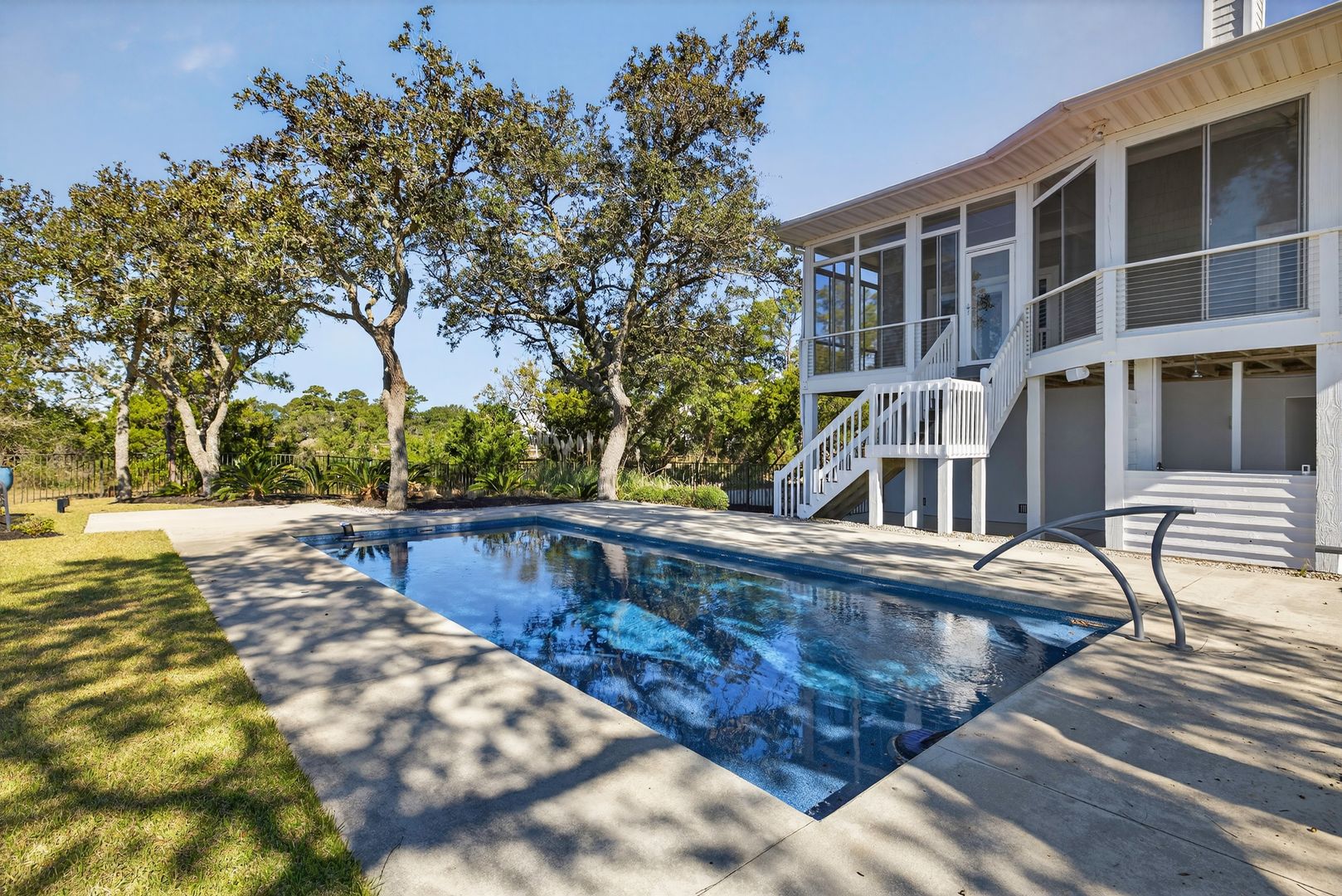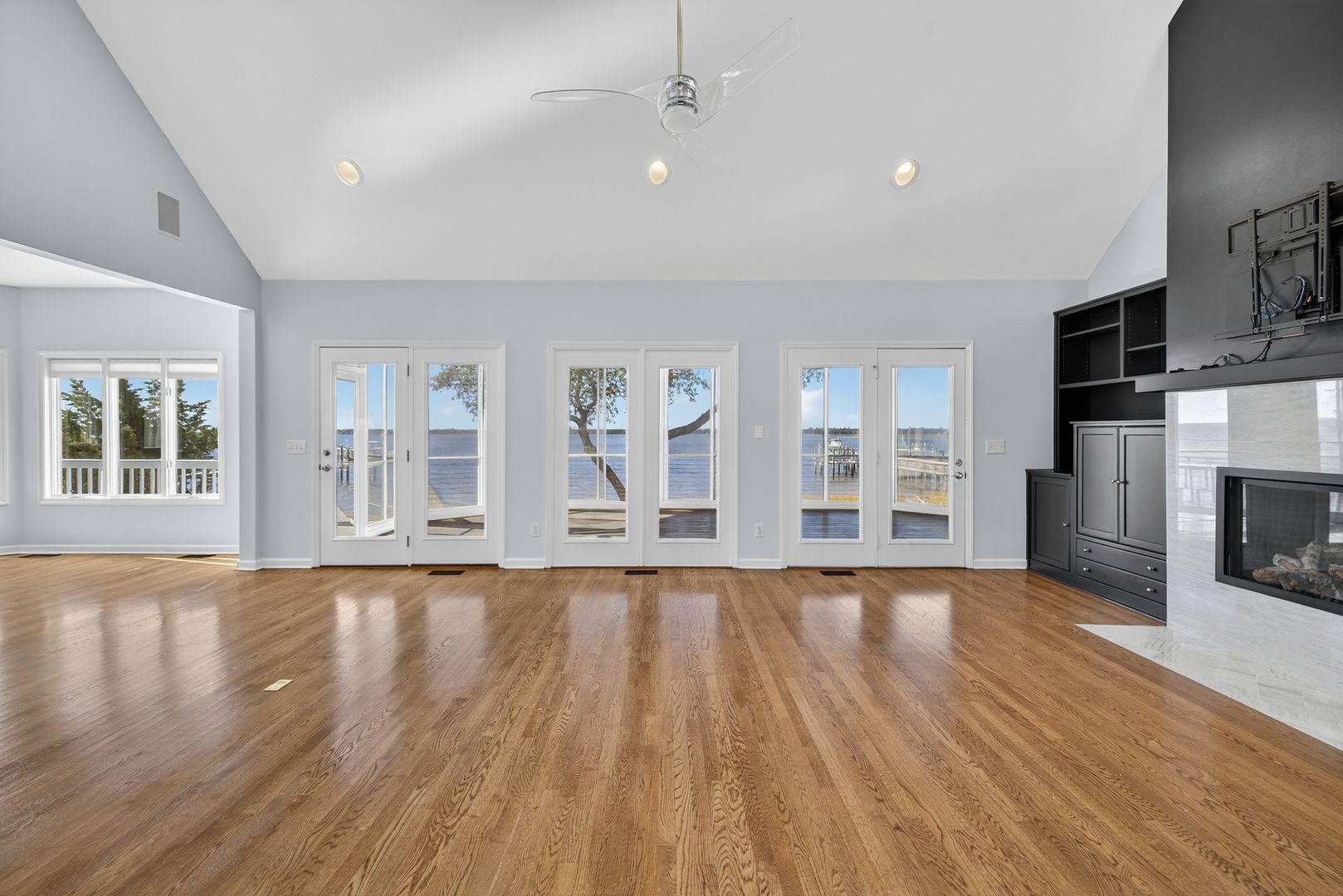 Enjoy panoramic water views, a private salt water pool, and direct access to a boat slip with a 10-ton boat lift—ideal for boating enthusiasts. Inside, the gourmet kitchen with stainless steel appliances and the open-concept living area are perfect for entertaining. The primary suite provides a private retreat with serene water views and a spa-like bath featuring a Jacuzzi tub. Work from home in the spacious office or flex room, designed to inspire productivity with plenty of natural light and tranquil surroundings.