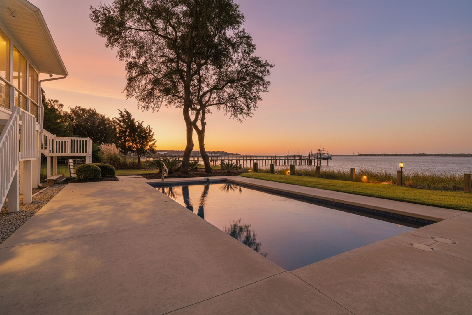 Headline: Waterfront Luxury with Pool, Dock & Home Office
