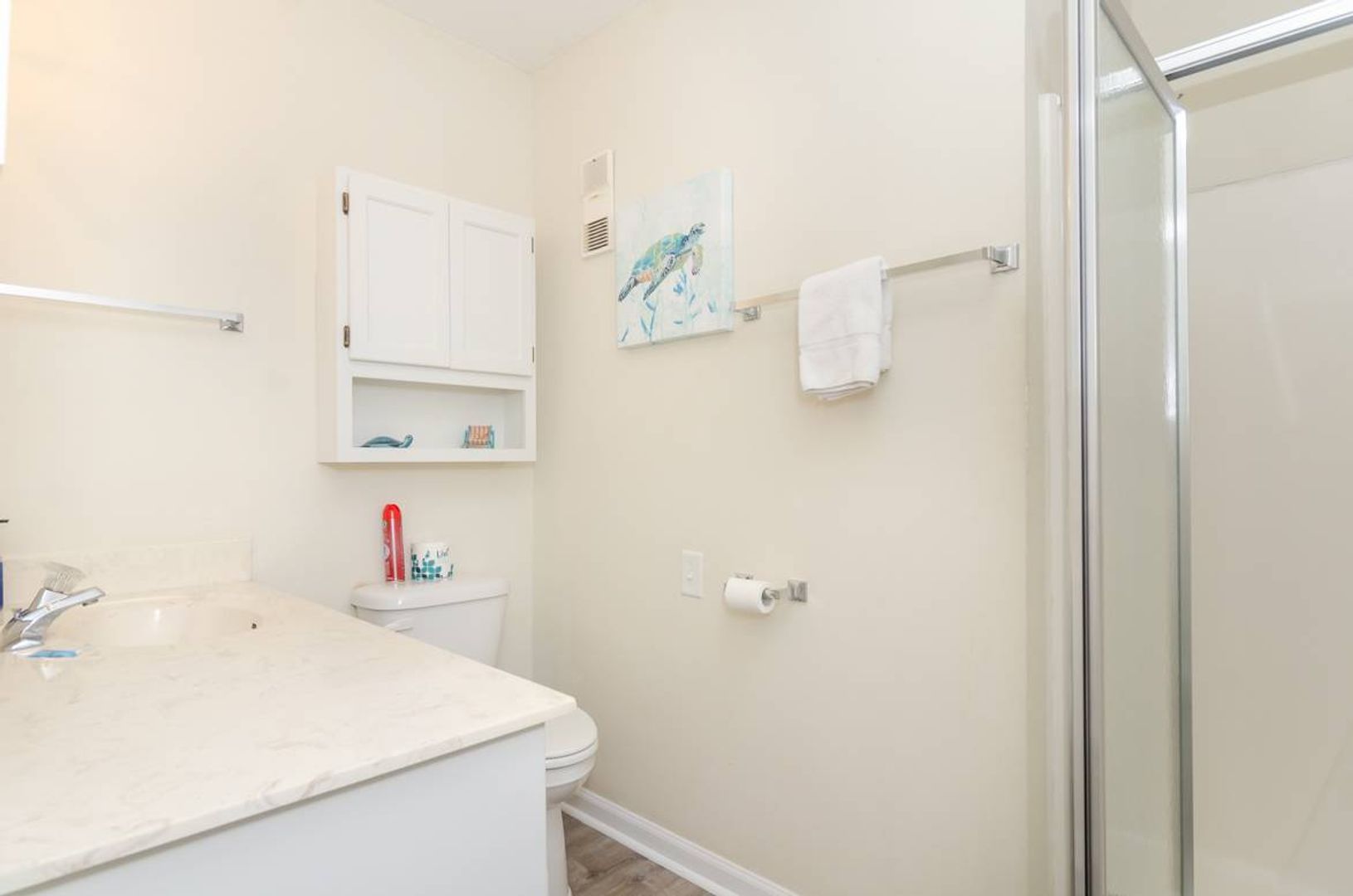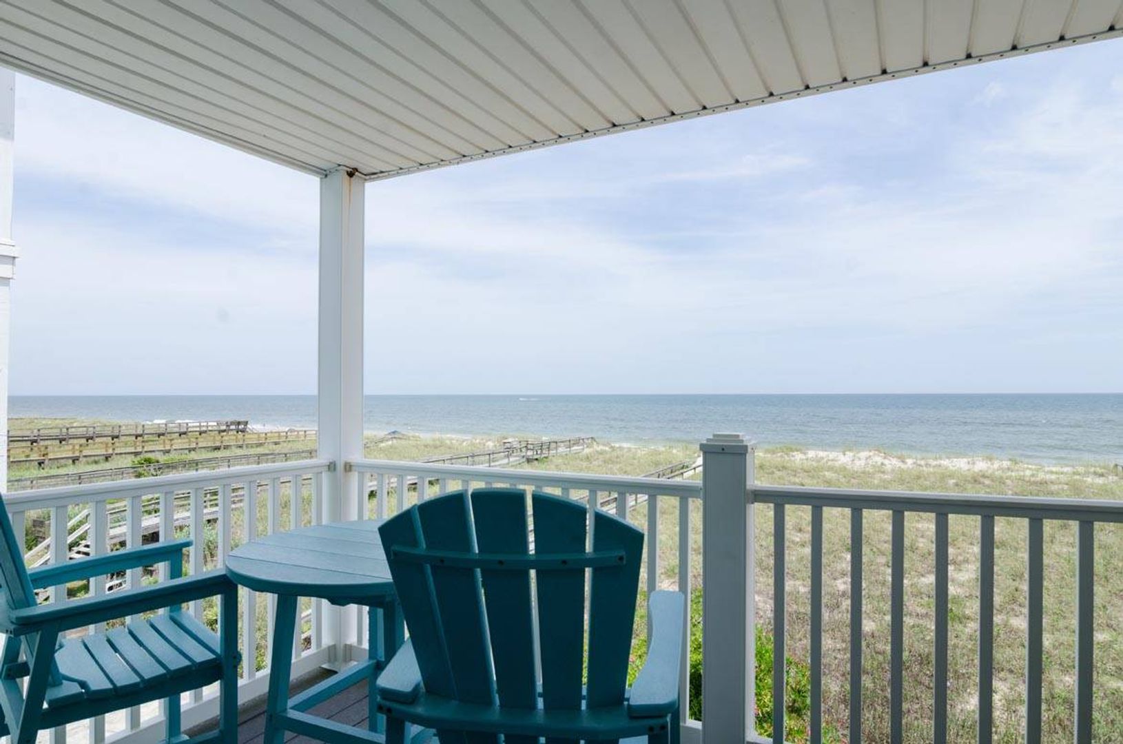 This 2 bedroom, 2 bath, oceanfront condo is located in the William & Mary complex in Carolina Beach. The living room and kitchen are oceanfront, while both bedrooms are street side. The spacious first bedroom boosts a Queen bed, street side deck, private bathroom with double sinks and flat screen TV. The second bedroom has a bunk bed with a Twin bed over a Full bed, flat screen TV and an attached full bathroom. There is a also a sleeper sofa in the living room. Sit outside and enjoy the ocean breezes and views on the oceanfront deck. A private walkway to the beach and an outside shower are located at the rear of the building.