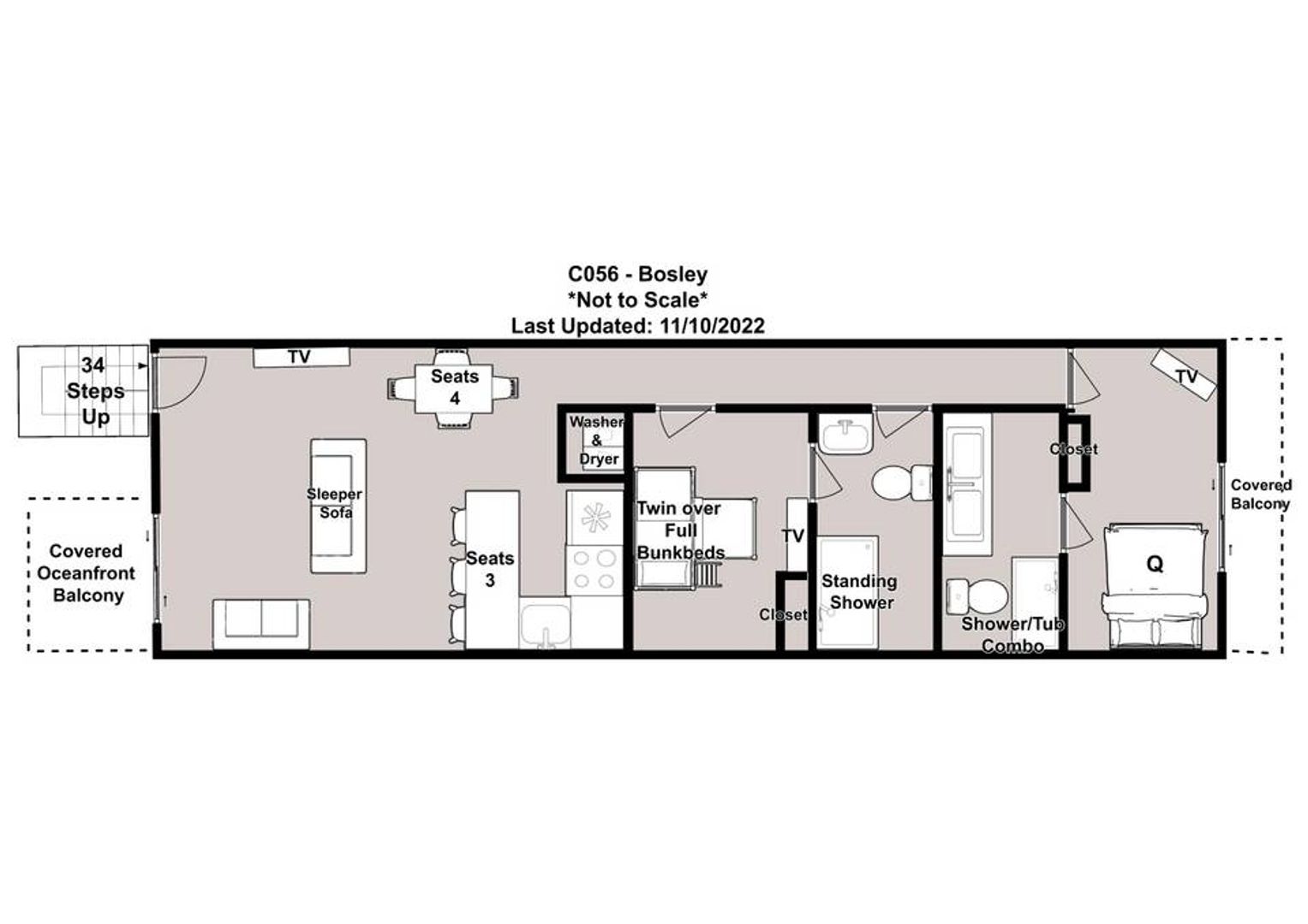 Bedding Recap: 1 Queen, 1 Bunk Bed (Twin over Full), 1 Sofa Bed