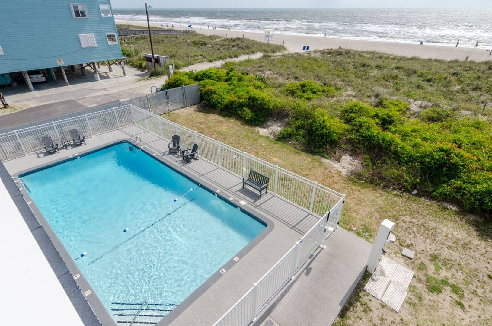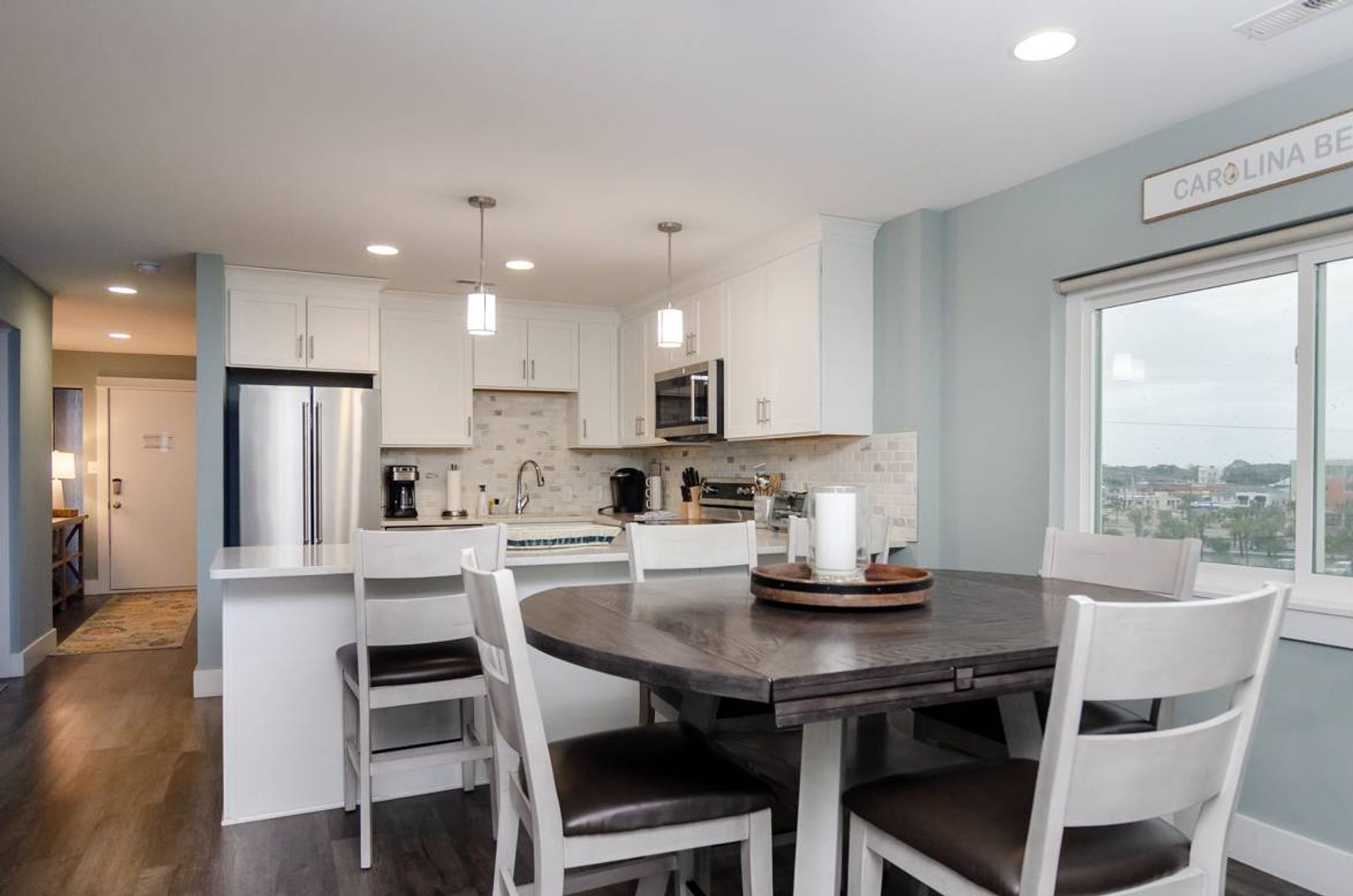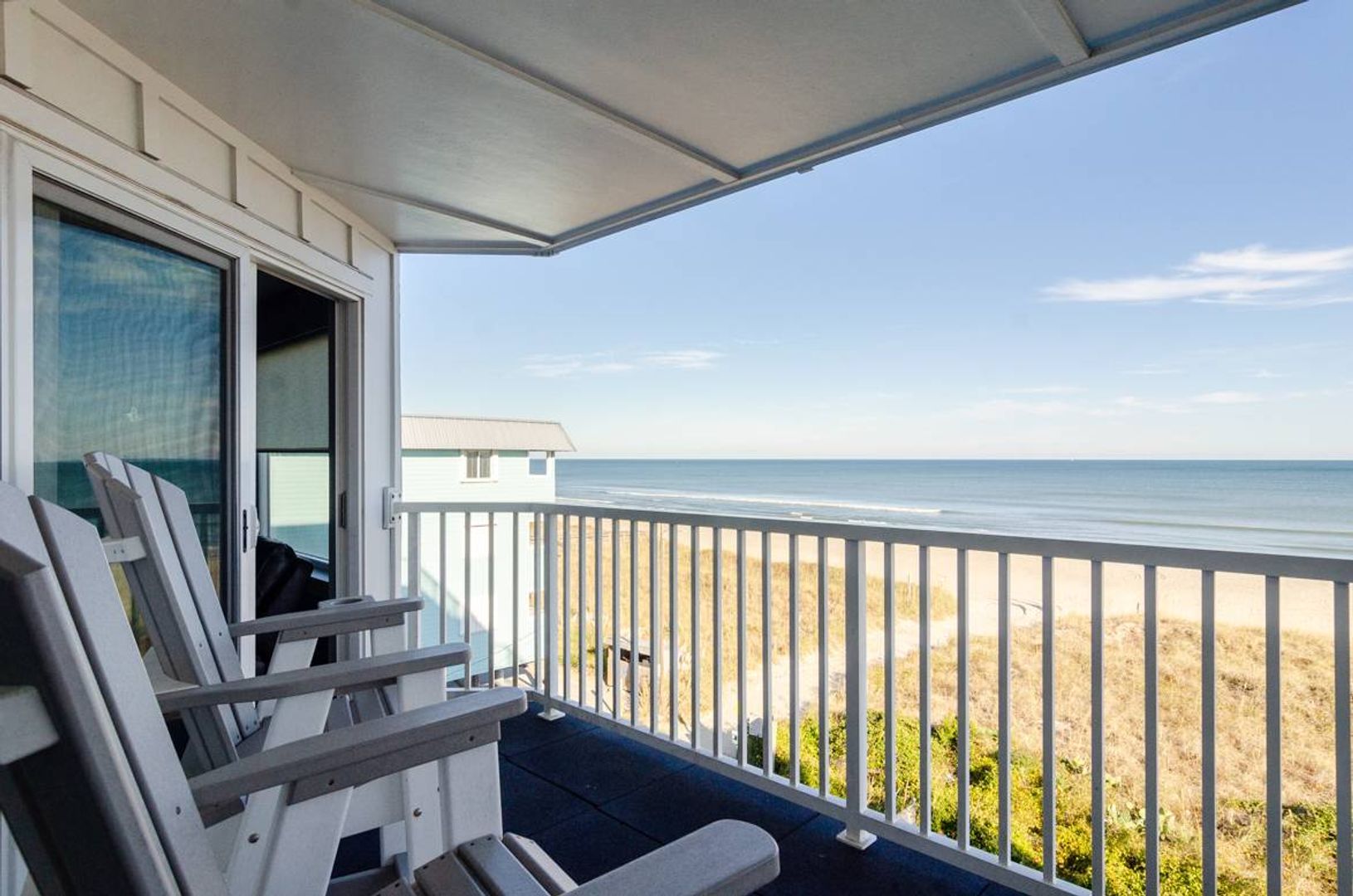 This beautifully renovated third floor condo is in the desirable Carolina Surf complex. As an end unit, guests will experience sweeping views of the crystal-clear Atlantic Ocean below and tons of natural light. A commercial elevator makes unpacking and accessing this home a breeze and once you are inside you are greeted by stunning ocean views that lure you into the main living space. There is a guest bedroom that features a Queen/ Queen bunk bed and an attached half bathroom that adds to the convenience and versatility of this guest bedroom. A second guest bedroom has a large king bed. The two guest bedrooms share access to the full bathroom located in the main hallway. The spacious primary suite offers a cozy king bed, private bathroom, and access to the ocean front deck. The living room is wrapped with a plush sectional sofa and is accented by the large picture window and sliding glass door. Gorgeous tile back splash, stainless steel appliances, and granite counter tops line the kitchen and provide a state-of-the-art cooking experience. **Please note there is only one parking space!**