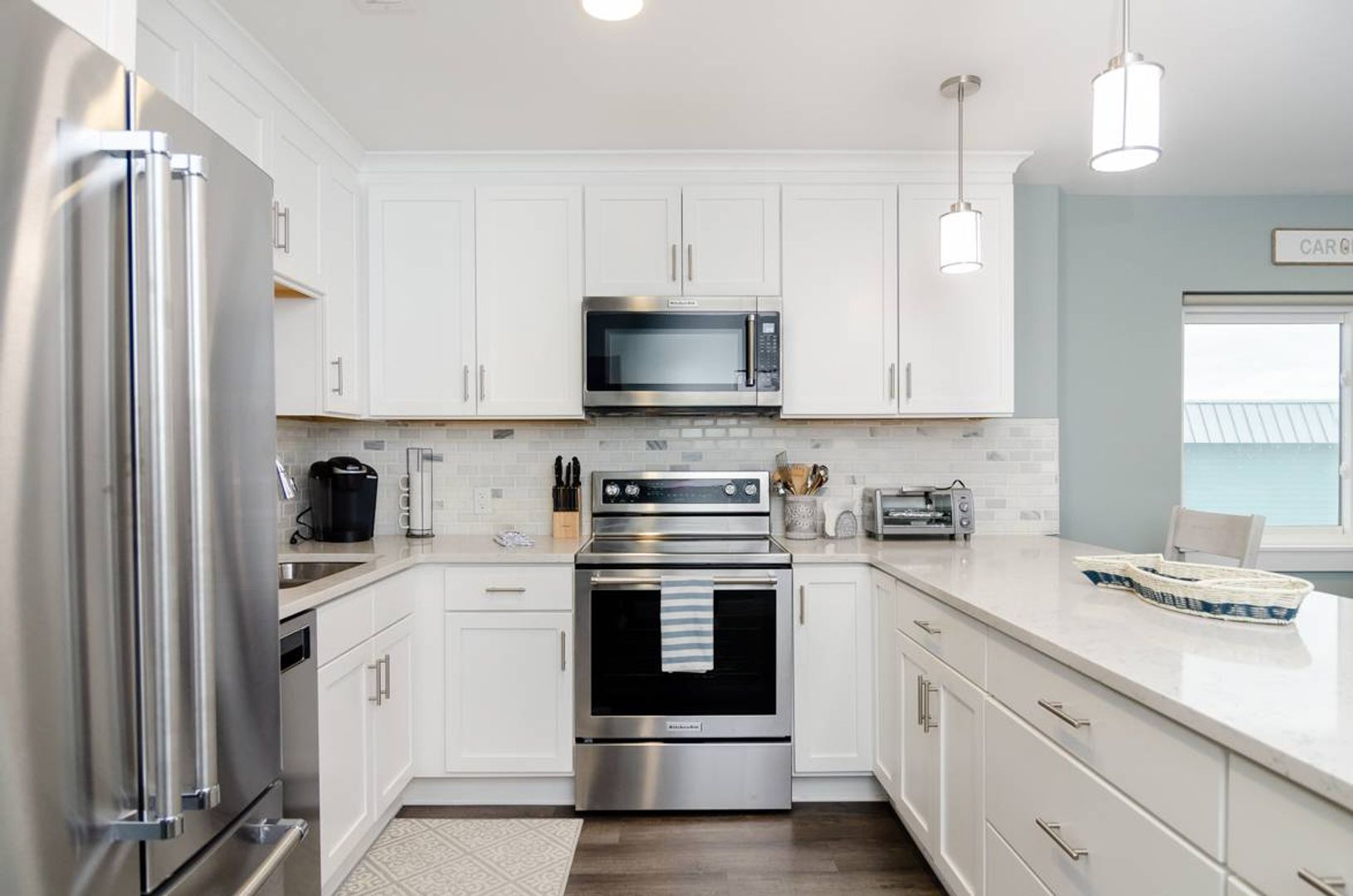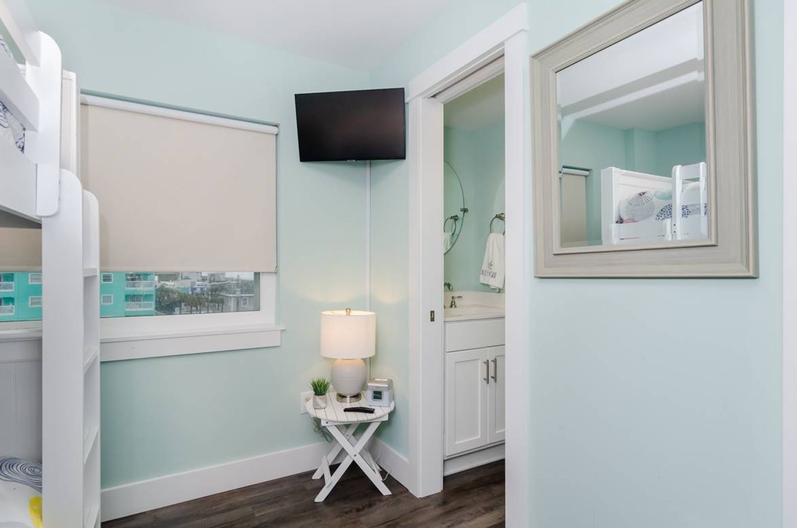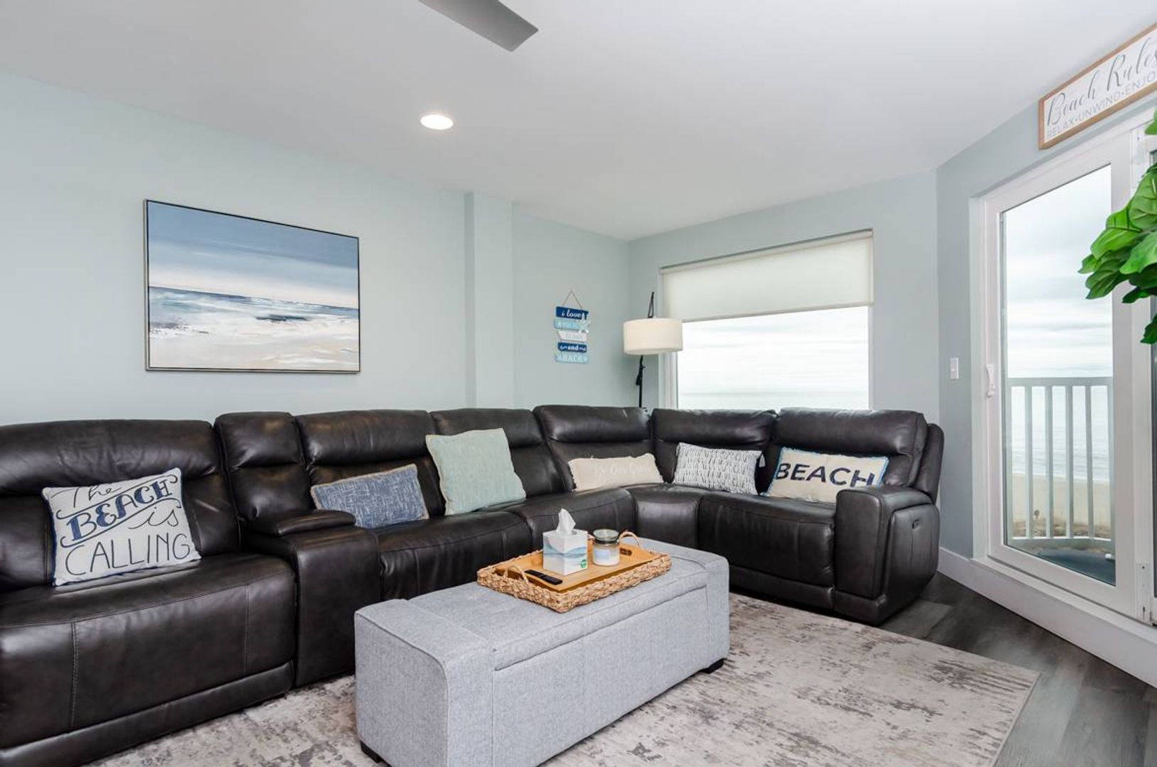 This beautifully renovated third floor condo is in the desirable Carolina Surf complex. As an end unit, guests will experience sweeping views of the crystal-clear Atlantic Ocean below and tons of natural light. A commercial elevator makes unpacking and accessing this home a breeze and once you are inside you are greeted by stunning ocean views that lure you into the main living space. There is a guest bedroom that features a Queen/ Queen bunk bed and an attached half bathroom that adds to the convenience and versatility of this guest bedroom. A second guest bedroom has a large king bed. The two guest bedrooms share access to the full bathroom located in the main hallway. The spacious primary suite offers a cozy king bed, private bathroom, and access to the ocean front deck. The living room is wrapped with a plush sectional sofa and is accented by the large picture window and sliding glass door. Gorgeous tile back splash, stainless steel appliances, and granite counter tops line the kitchen and provide a state-of-the-art cooking experience. **Please note there is only one parking space!**