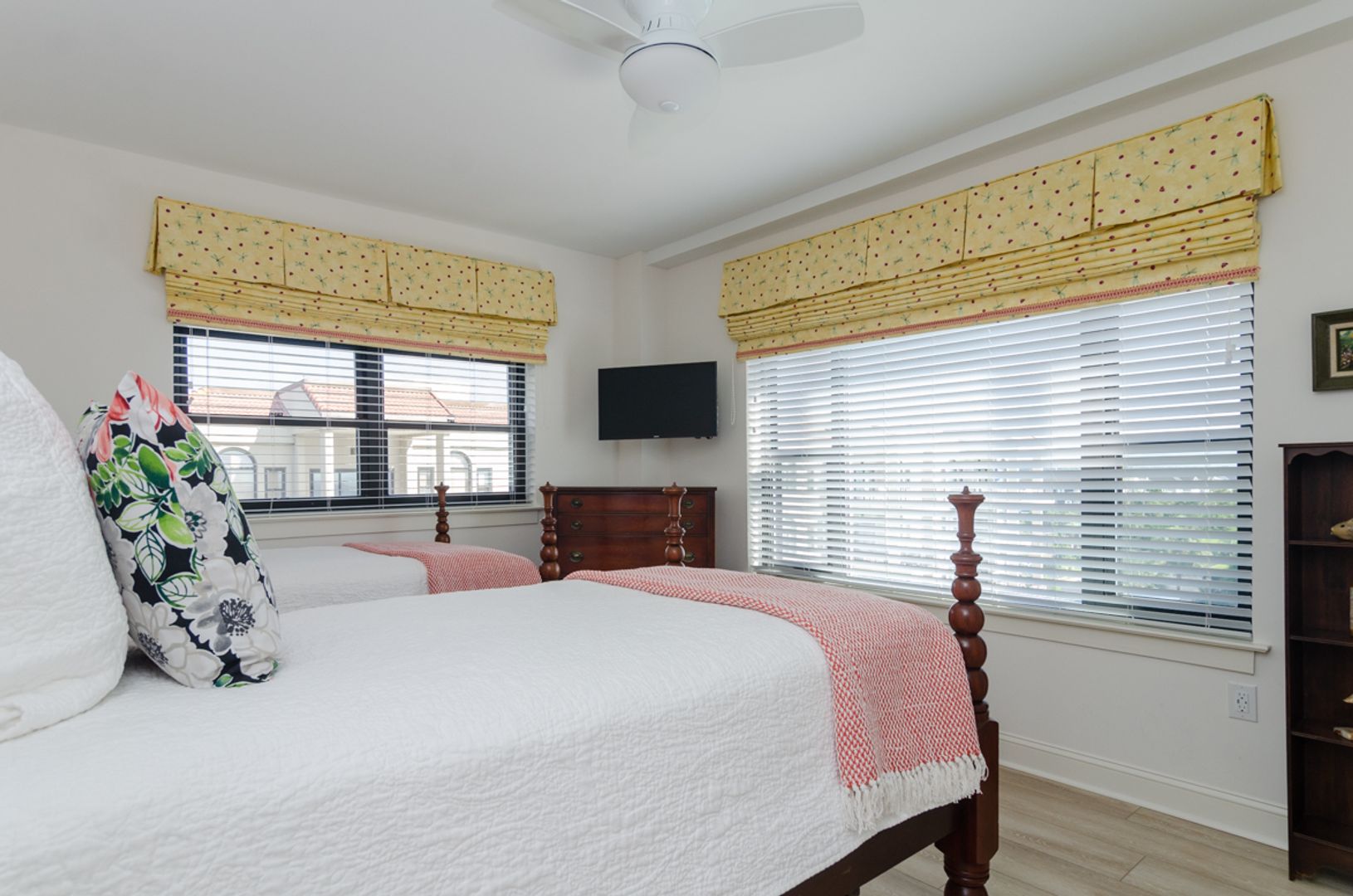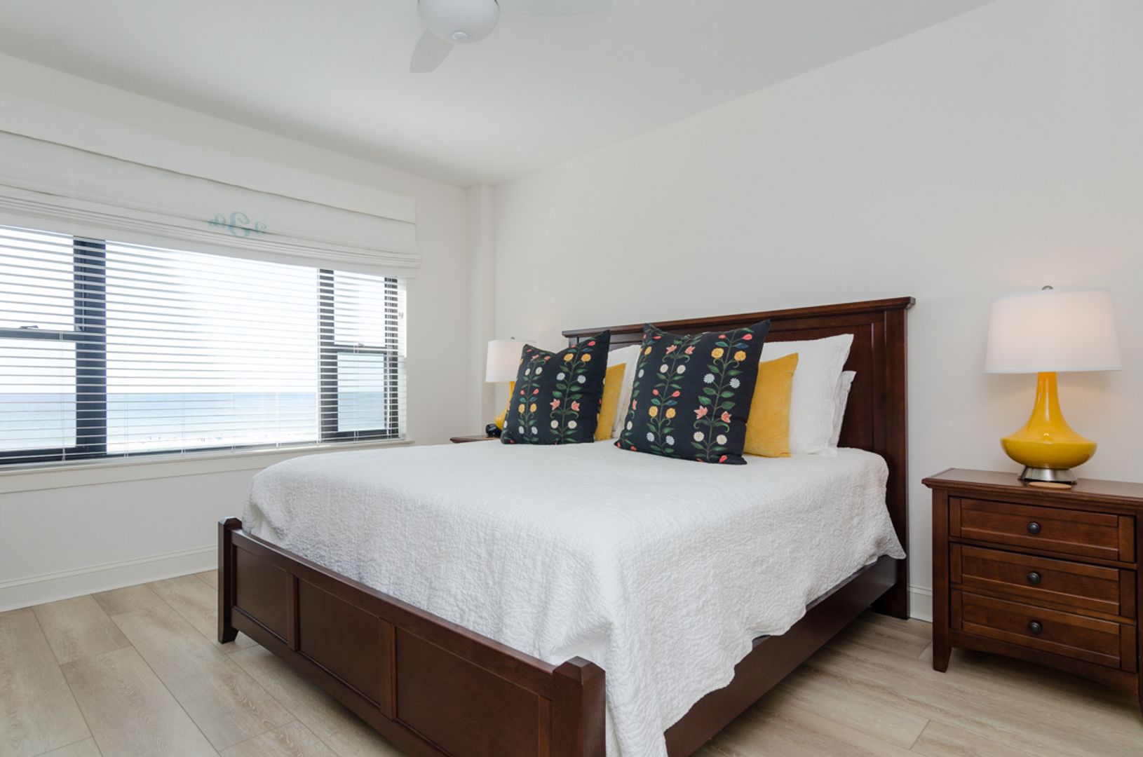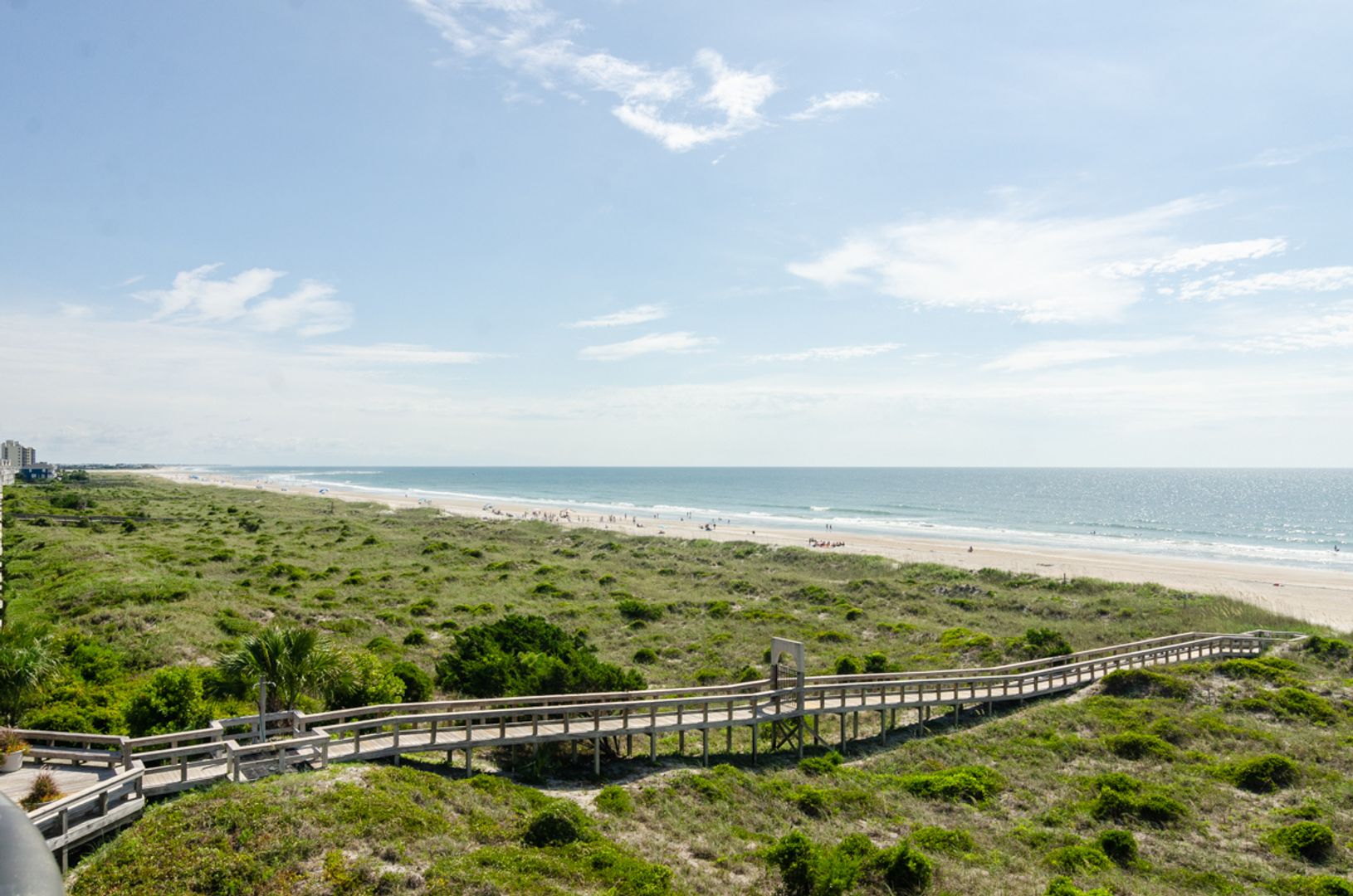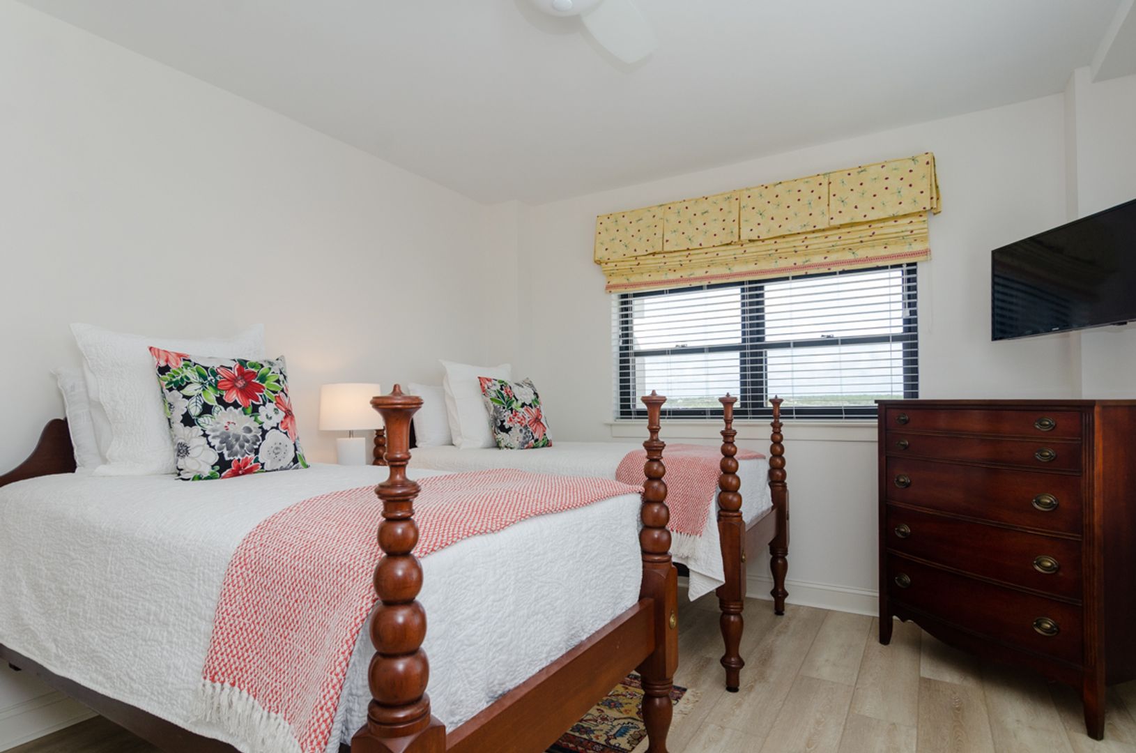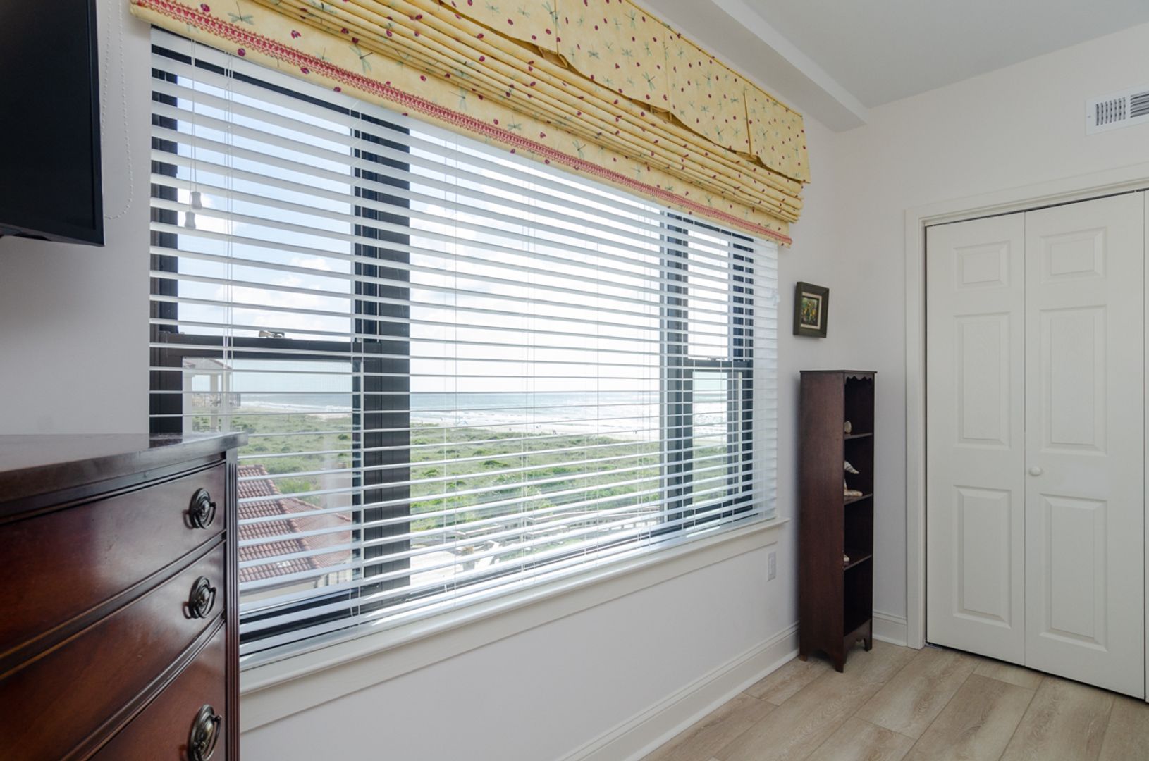 Just off the living room is the spacious primary suite which is complete with a new king-sized bed and updated bathroom that features a walk-in shower and dual sinks. You will enjoy waking up with the morning sunrise and the fabulous ocean views from your cozy bed. There are two additional guest bedrooms at the front of the condo that overlook the marsh. A queen guest room with a half bathroom makes a wonderful accommodation for guests of any age and the sunset views from this room are breathtaking. Across the hall is a twin bedroom that has two twin sized beds and a shared hallway bathroom. A private walkway from the Duneridge Resort leads you to the white sandy beach - arguably one of the most beautiful access points on the island! The secure lobby and community elevator are an added convenience.