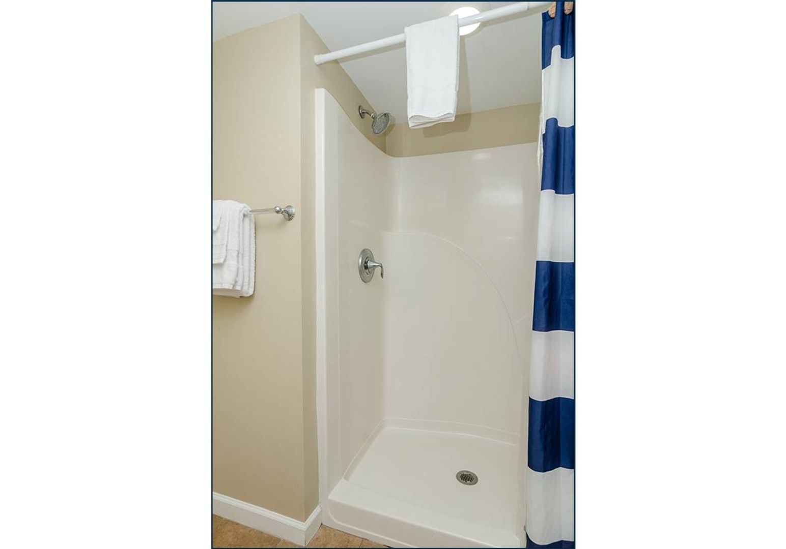 The second kitchen is perfect for entertaining with plenty of counter space and seating for everyone to gather. Whether you’re prepping meals or setting out snacks for a casual hangout, this space is as functional as it is inviting. Gather around the spacious dining table or settle into the cozy living area for game night, storytelling, or a movie marathon. Three more bedrooms are located on this level: a serene queen suite with a private bathroom that offers a shower tub combination, a second queen bedroom, and another playful bunk room with two sets of twin bunks (again, designed for children). A shared bathroom adjoins the queen guest room and bunk room. A full laundry center off the dining area completes this floor, offering convenience and flexibility.