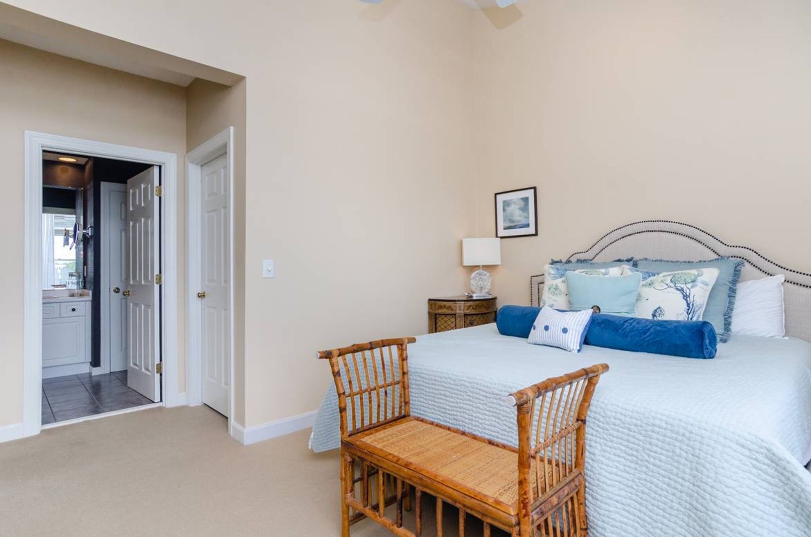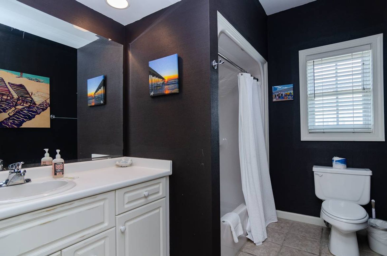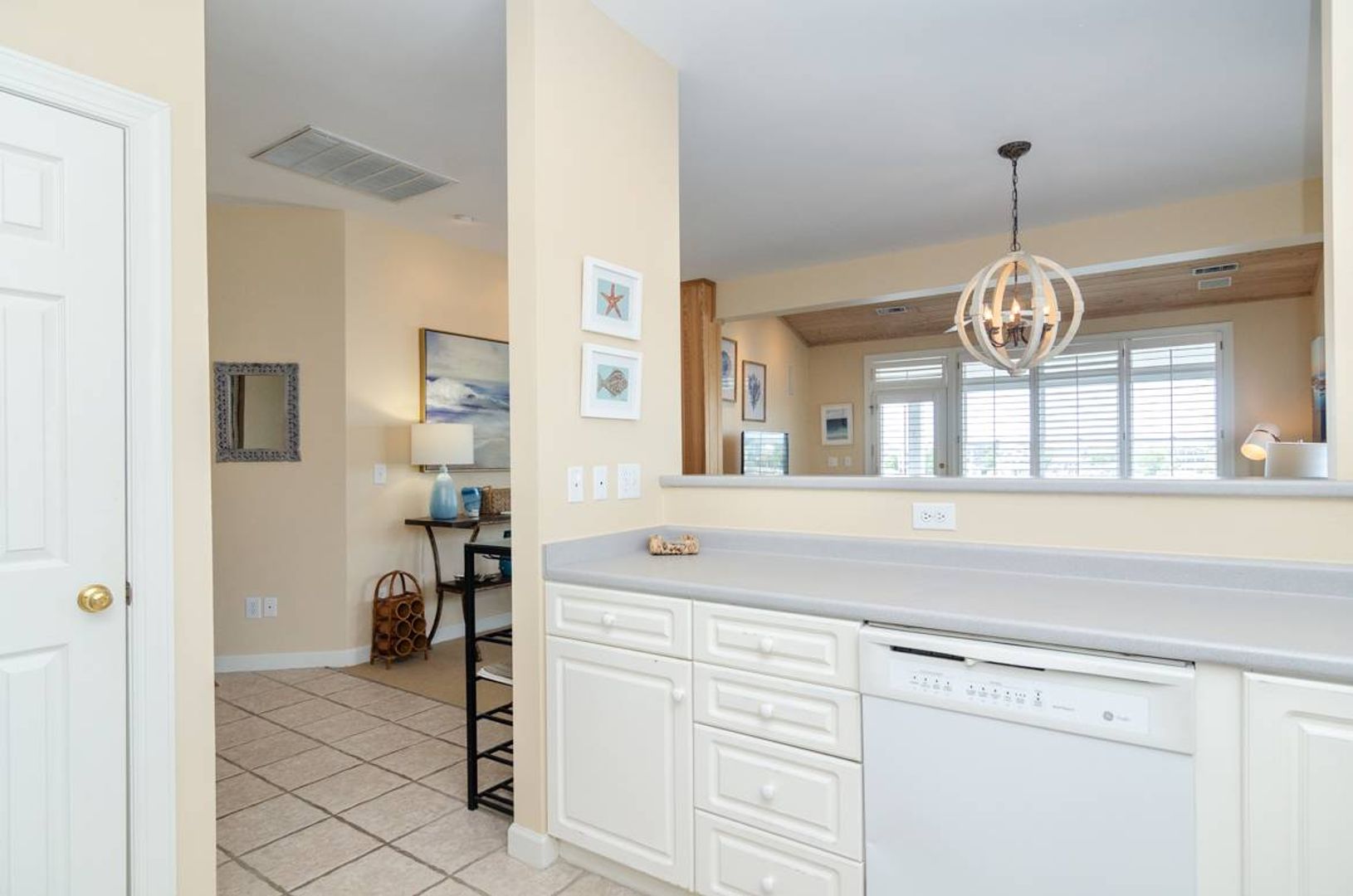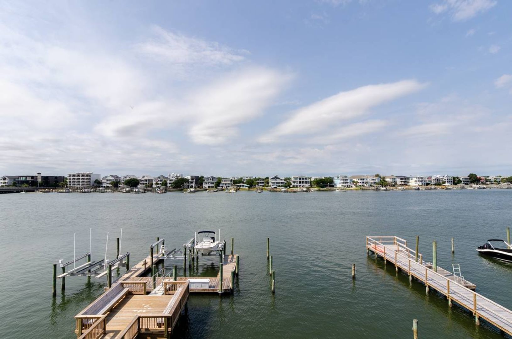 “All Decked Out" is a top floor 3-bedroom, 2-bathroom condo located at the end of Columbia Street in a quiet condo community with only four units. This third-floor property offers privacy, wonderful sound views, spectacular sunsets, and is in the center of Wrightsville Beach. Nicely decorated with a bright and airy living and dining area that opens onto a covered deck. The living room has comfortable furniture and beautiful wooden ceilings that give a modern beach feel to the space. Just off the living room is the primary suite with a king bed and a large private bath with convenient access to the sound front deck. The split floor plan offers added privacy for guests. Two guest bedrooms, one with a queen bed and the other furnished with two twin beds, are located off the main entry hall. A guest bathroom is located opposite the kitchen. The kitchen has plenty of pantry space and is easy to navigate.