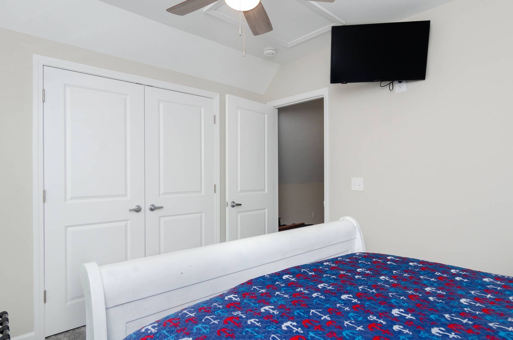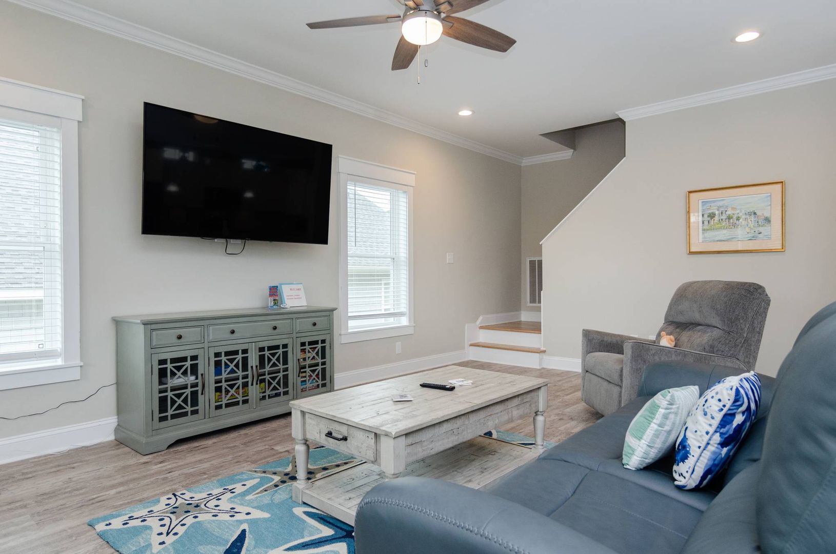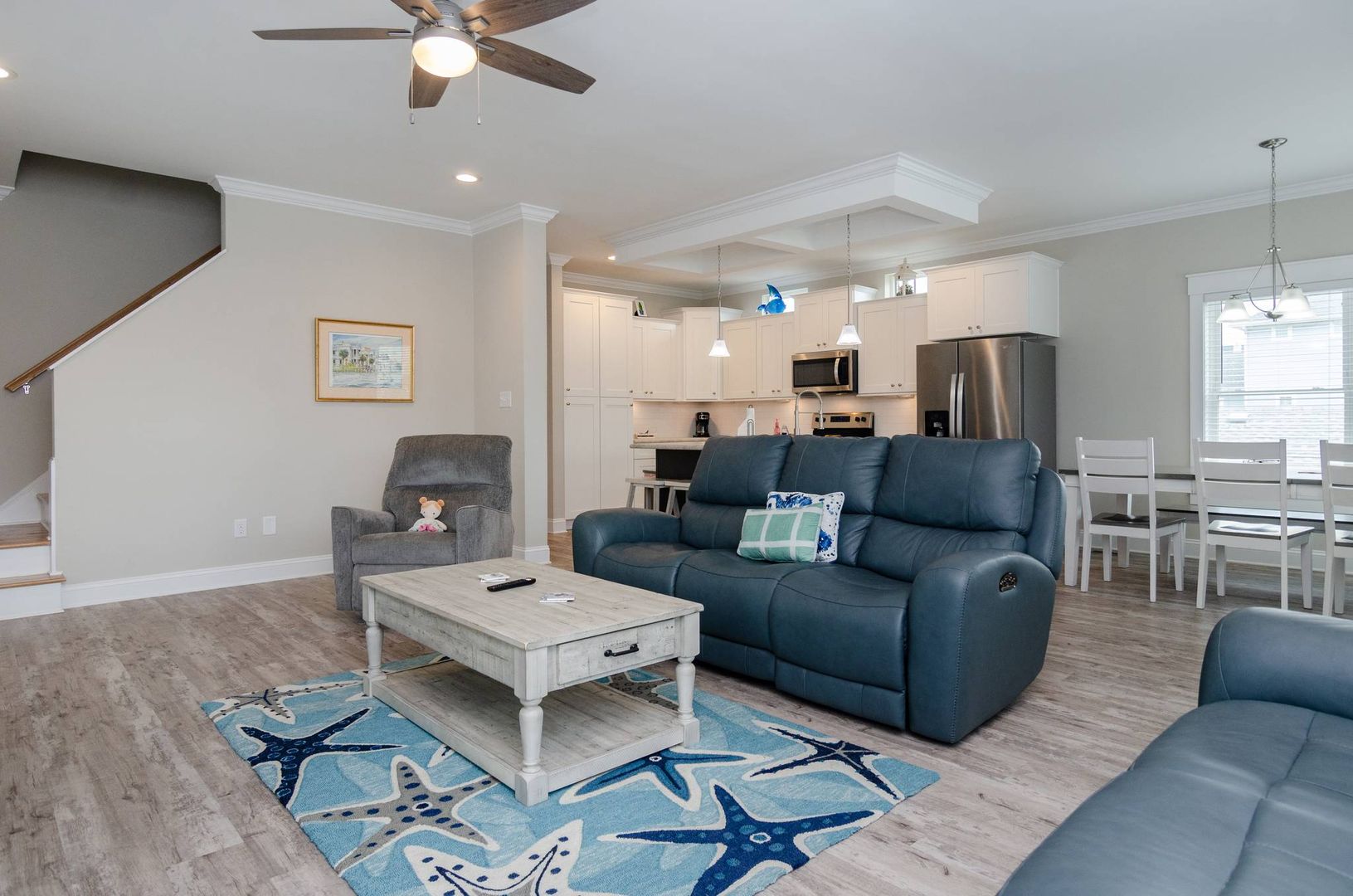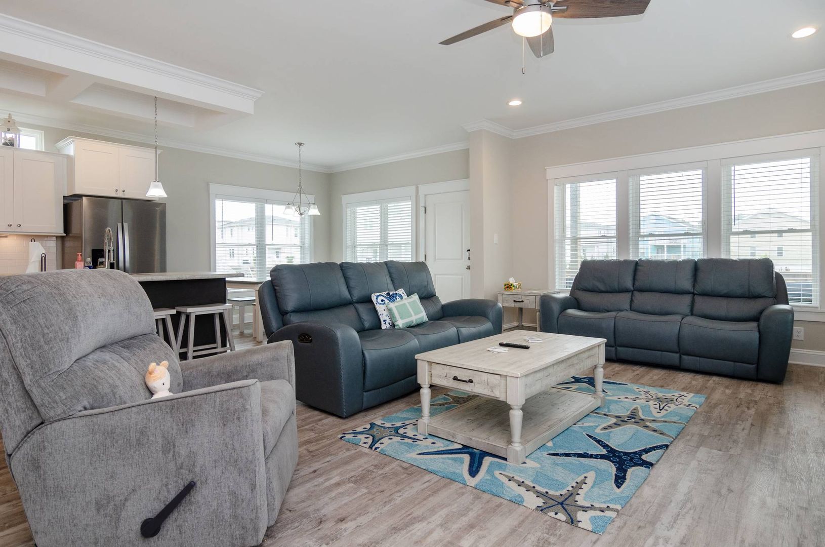 This stunning new construction home offers 4-bedrooms, 2.5 bathrooms and a wonderful central location. The main living level welcomes you with a large open concept living space. Complete with a sizable living area, dining table, and kitchen, this great room is the heart of the home. The kitchen is furnished with stainless steel appliances, a large sink, an eat in island with seating for 5, and ample storage space for your groceries. The primary bedroom is furnished with a comfortable king-sized bed and features its own private bathroom with dual vanity, rainfall shower head, and walk in shower. There is also a half bathroom and laundry room on this level. Upstairs you will find a bonus living space as well as the three guest bedrooms. The first guest bedroom is furnished with a queen size bed and offers a television. Another guest bedroom features a twin day bed that has a twin trundle neatly tucked below. There is a full bathroom complete with a combination tub and shower. At the opposite end of the lofted living space, there is another queen guest bedroom which also offers a television. Outside you will find an enclosed outdoor shower, and a private hot tub which is covered and available for use in all seasons. There is also a gas grill available along with a wood burning fire pit in the back yard.