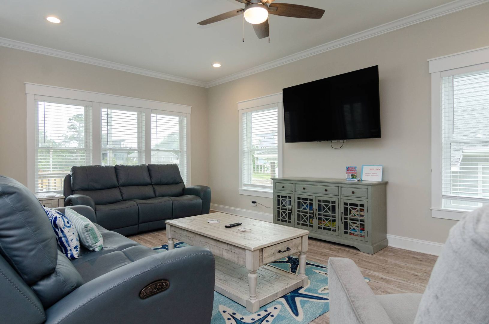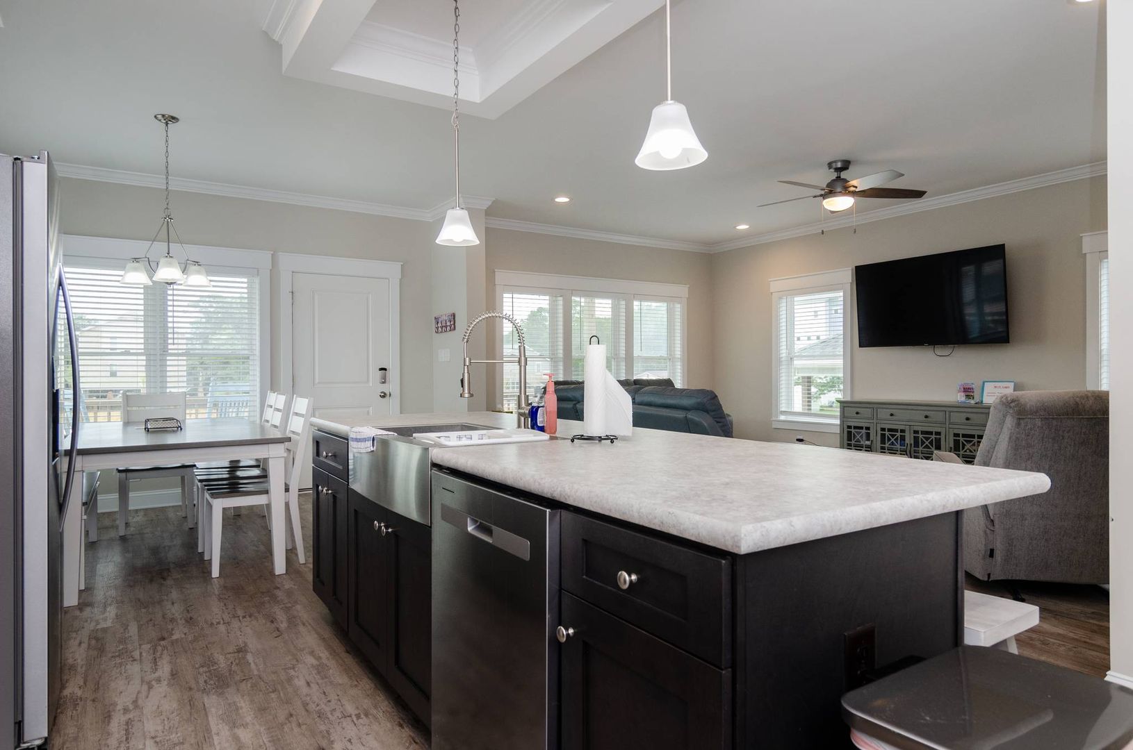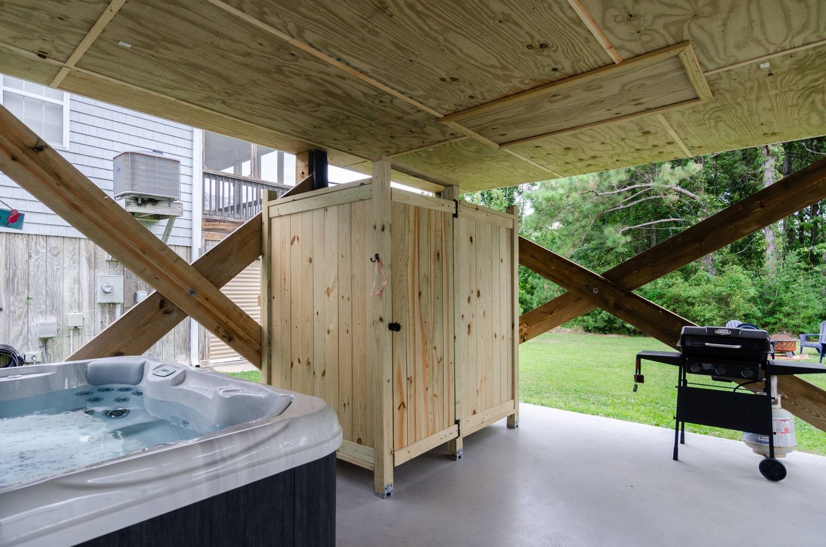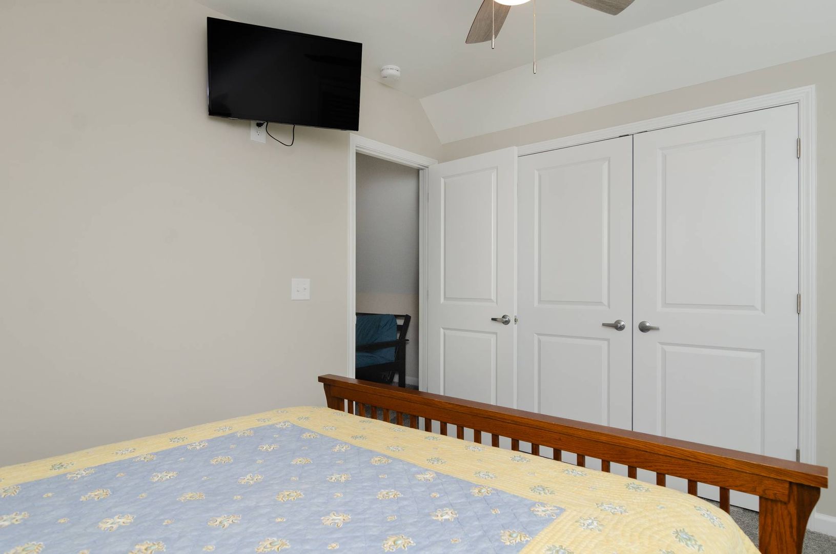 This stunning new construction home offers 4-bedrooms, 2.5 bathrooms and a wonderful central location. The main living level welcomes you with a large open concept living space. Complete with a sizable living area, dining table, and kitchen, this great room is the heart of the home. The kitchen is furnished with stainless steel appliances, a large sink, an eat in island with seating for 5, and ample storage space for your groceries. The primary bedroom is furnished with a comfortable king-sized bed and features its own private bathroom with dual vanity, rainfall shower head, and walk in shower. There is also a half bathroom and laundry room on this level. Upstairs you will find a bonus living space as well as the three guest bedrooms. The first guest bedroom is furnished with a queen size bed and offers a television. Another guest bedroom features a twin day bed that has a twin trundle neatly tucked below. There is a full bathroom complete with a combination tub and shower. At the opposite end of the lofted living space, there is another queen guest bedroom which also offers a television. Outside you will find an enclosed outdoor shower, and a private hot tub which is covered and available for use in all seasons. There is also a gas grill available along with a wood burning fire pit in the back yard.