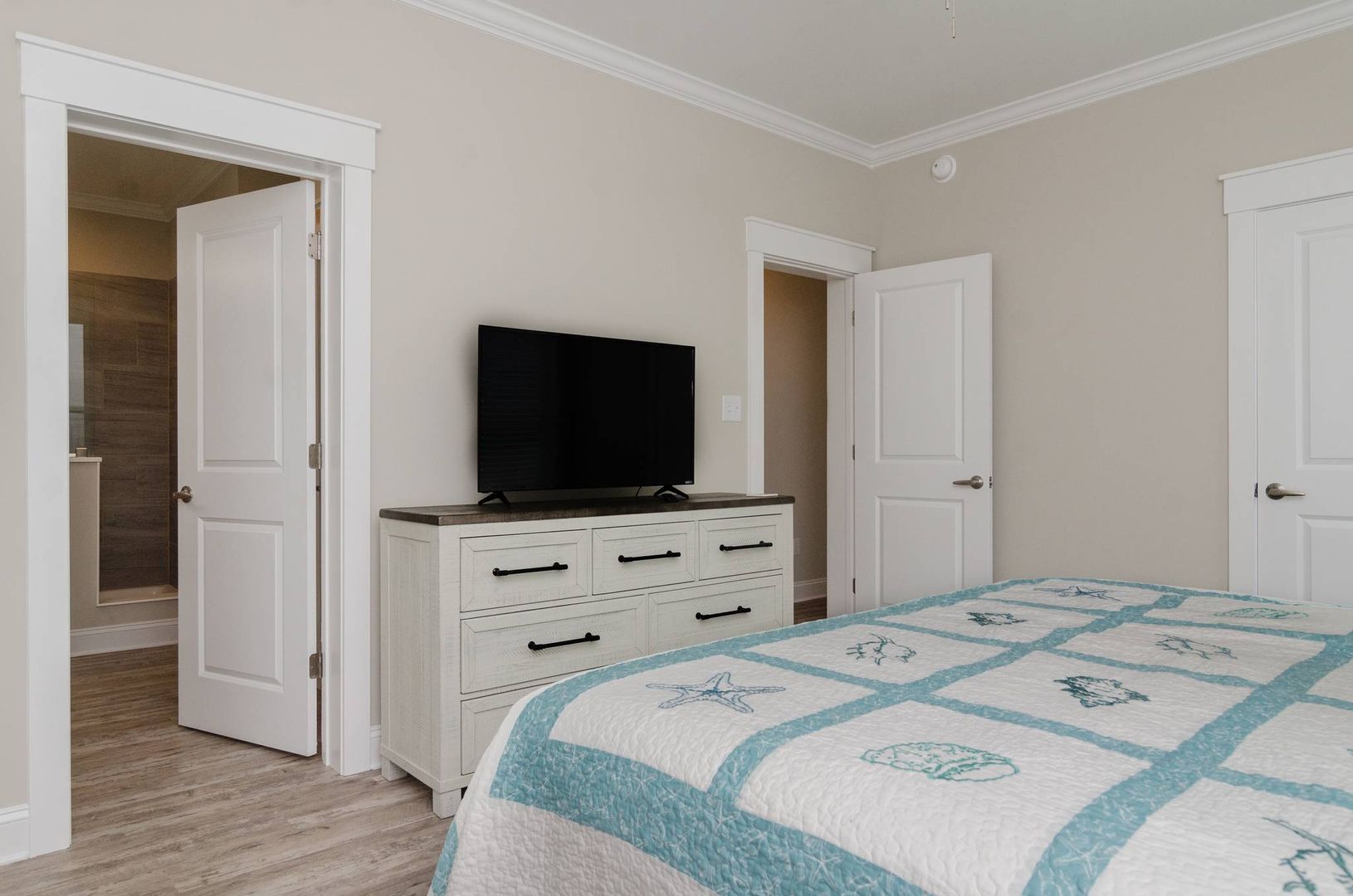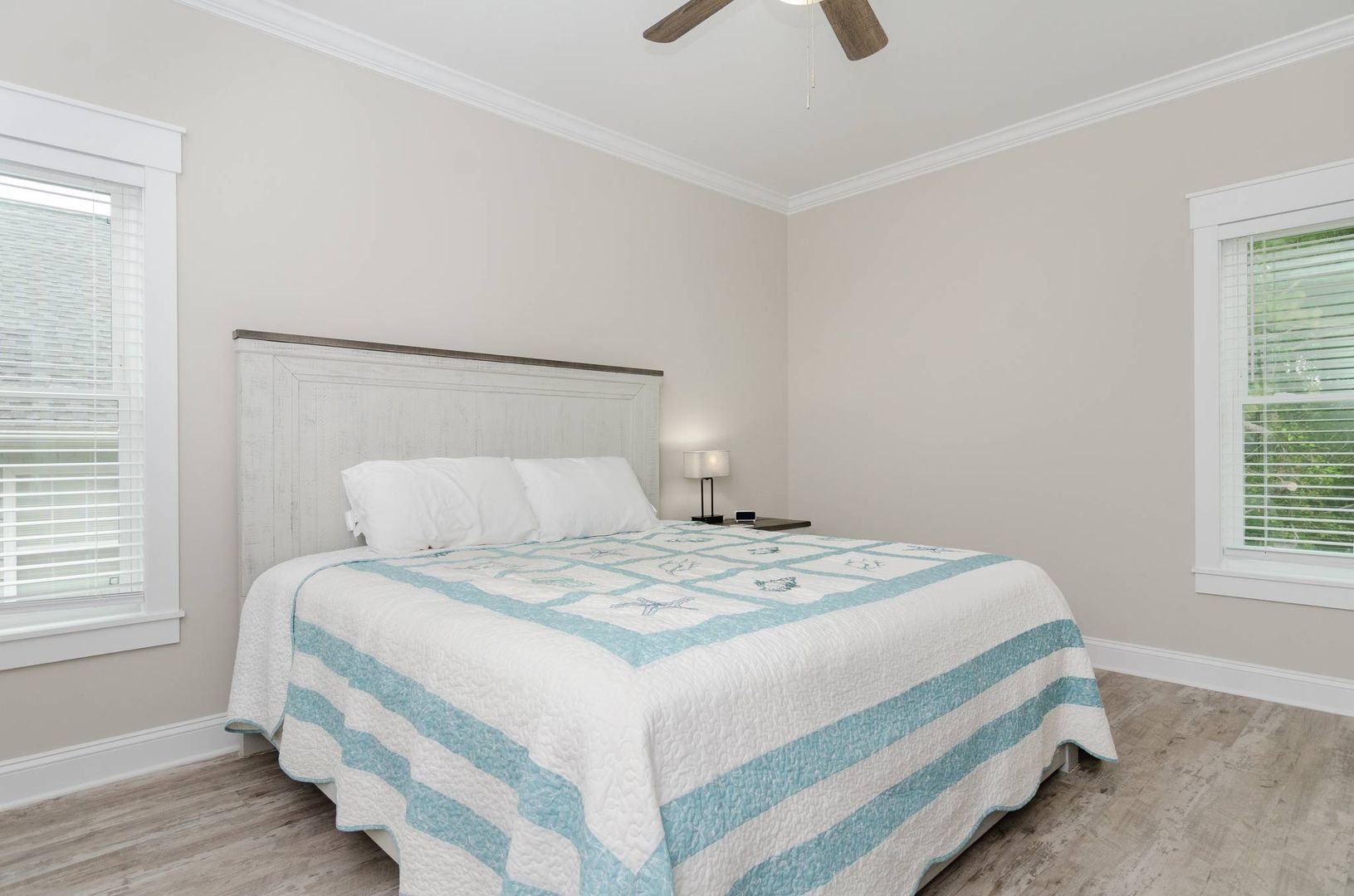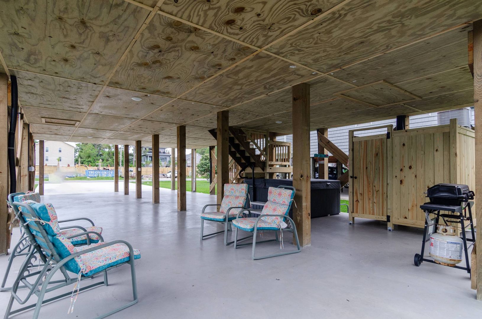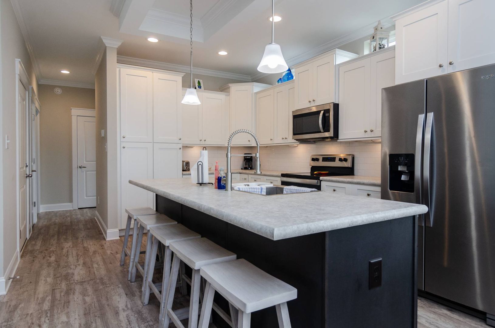 This stunning new construction home offers 4-bedrooms, 2.5 bathrooms and a wonderful central location. The main living level welcomes you with a large open concept living space. Complete with a sizable living area, dining table, and kitchen, this great room is the heart of the home. The kitchen is furnished with stainless steel appliances, a large sink, an eat in island with seating for 5, and ample storage space for your groceries. The primary bedroom is furnished with a comfortable king-sized bed and features its own private bathroom with dual vanity, rainfall shower head, and walk in shower. There is also a half bathroom and laundry room on this level. Upstairs you will find a bonus living space as well as the three guest bedrooms. The first guest bedroom is furnished with a queen size bed and offers a television. Another guest bedroom features a twin day bed that has a twin trundle neatly tucked below. There is a full bathroom complete with a combination tub and shower. At the opposite end of the lofted living space, there is another queen guest bedroom which also offers a television. Outside you will find an enclosed outdoor shower, and a private hot tub which is covered and available for use in all seasons. There is also a gas grill available along with a wood burning fire pit in the back yard.