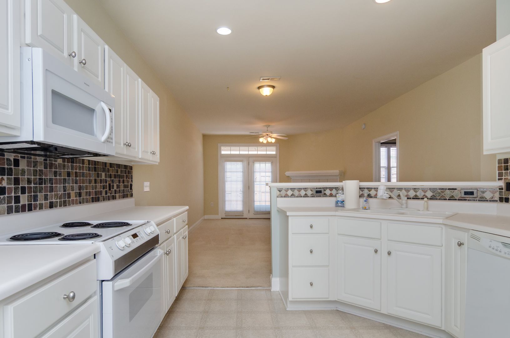 The home features a spacious one-car garage and a number of recent updates designed to enhance everyday living. The primary bathroom was upgraded last year with a walk-in shower, while the guest bathroom retains a traditional bathtub for added flexibility. In the kitchen, you'll find a new stainless steel side-by-side refrigerator and a built-in microwave, both installed in 2025. Outdoor living is made even better with a newly installed, remote-controlled retractable SunSetter awning over the back patio—ideal for enjoying sunny afternoons or quiet evenings. The primary bedroom also includes a new ceiling fan with a built-in light and remote control for added comfort and style.