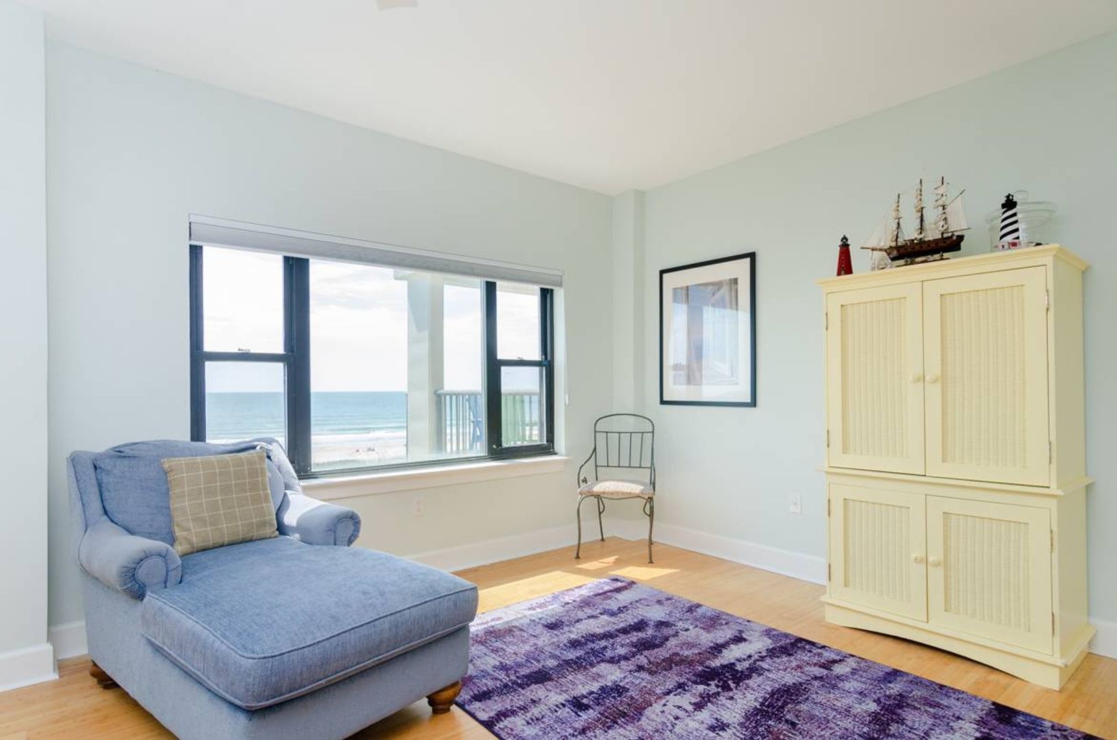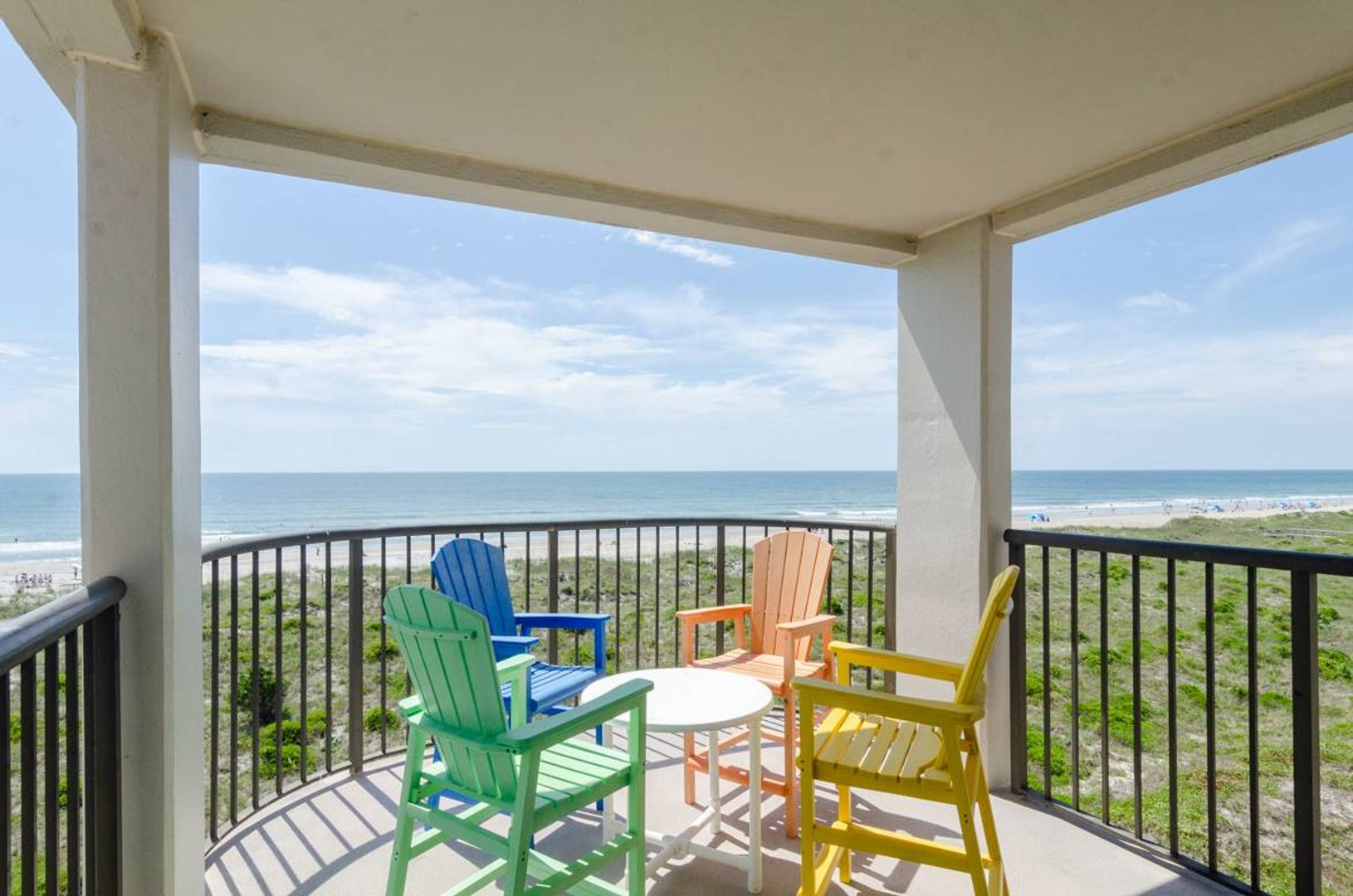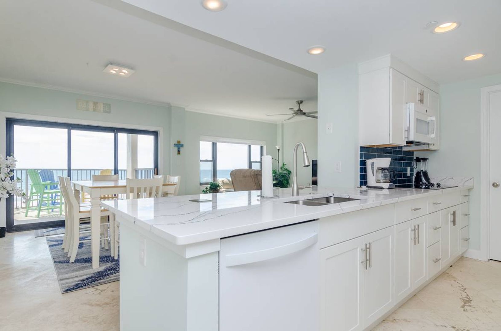 The main living area offers a comfortable living space and a beautifully renovated kitchen that opens to a spacious horseshoe balcony to maximize the ocean views. The deck is the perfect place to catch a spectacular sunrise or relax at the end of a long day. The spacious primary suite is complete with a king-sized bed, television, and updated bathroom that features a walk-in shower and large closet. There are two additional guest bedrooms at the front of the condo that overlook the marsh. A king guest room makes a wonderful accommodation for guests of any age and a nearby hall bathroom services this guest room. Across the hall is a bunk bedroom that has a pyramid bunk bed (full over full) and a private bathroom.