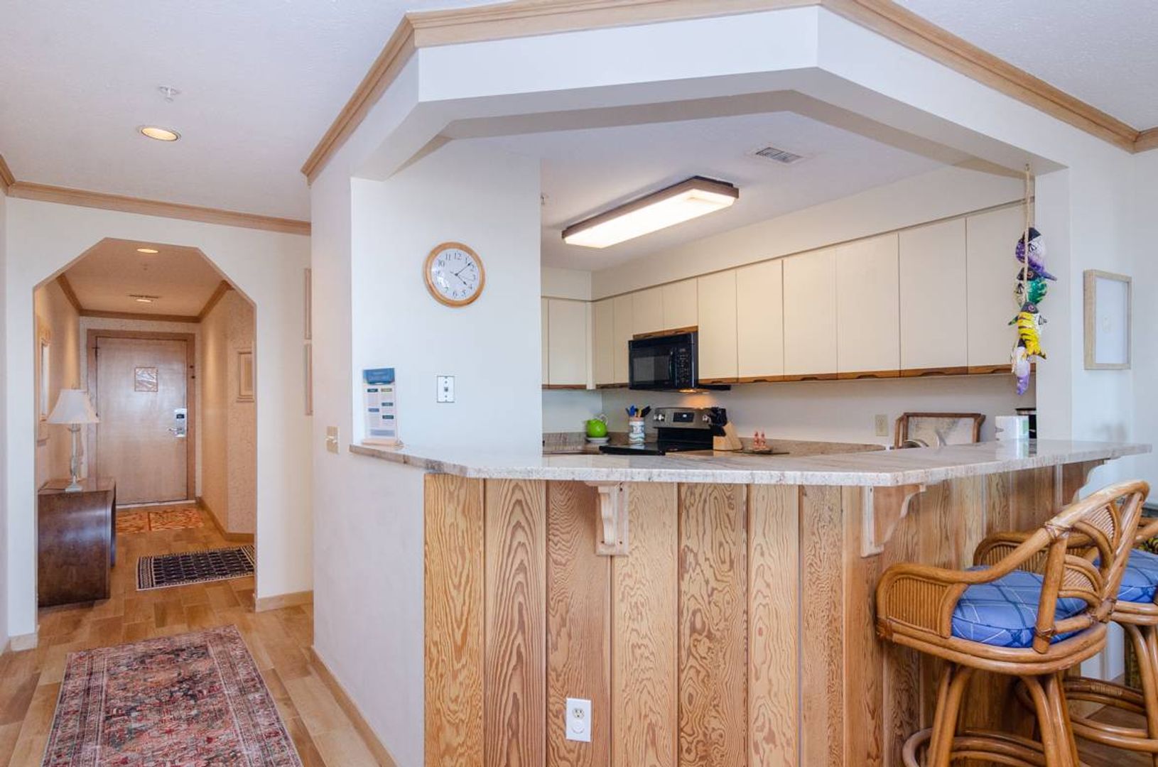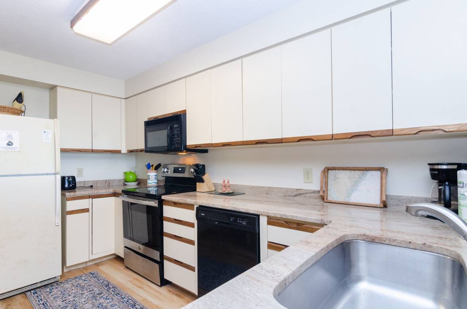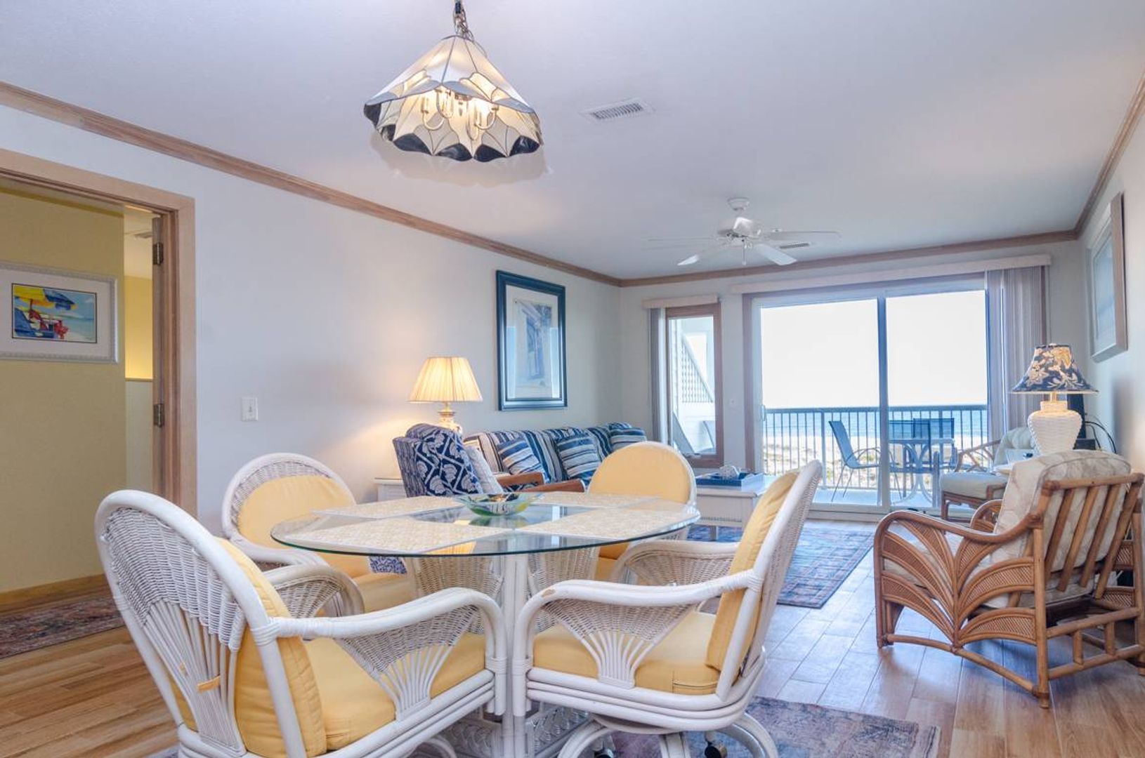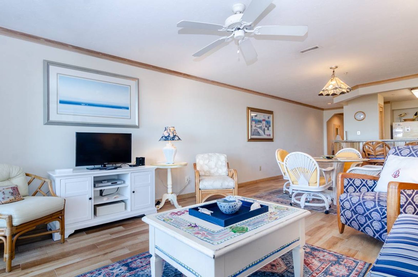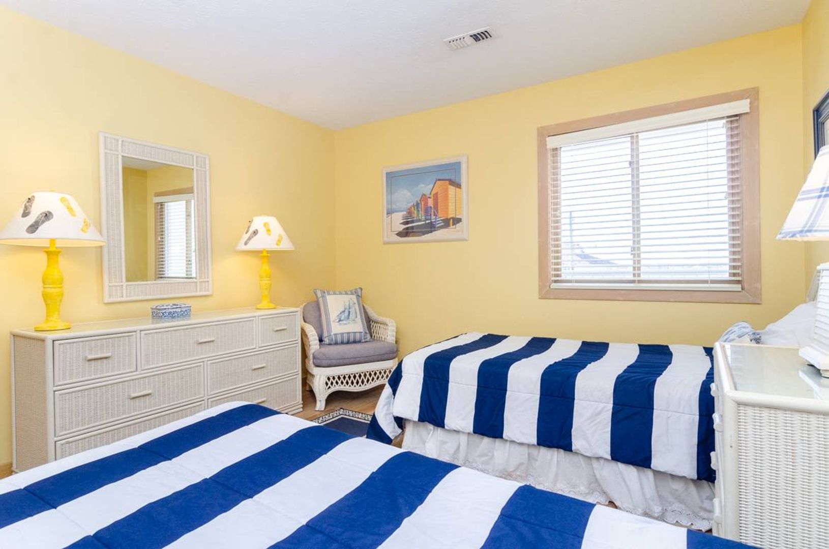 This comfortably updated 3-bedroom, 2-bathroom condo is located on the second floor of the desirable Wrightsville Dunes Complex which is on the secluded northern end of Wrightsville Beach. Once inside of the condo you will enter a hallway that opens to the beautiful ocean view. To the left there is a second hallway that leads to the two sound side guest bedrooms and the newly renovated hall bathroom. The first guest room is furnished with a queen-sized bed and neighbors the second guest bedroom with two twin size beds. At the end of the hall you will find a full bathroom that serves the guest rooms and features a tub, shower, and lovely vanity with granite counter tops. Just down the main hallway you will be welcomed by the wonderful great room that features an open concept kitchen, living, and dining area. The entire condo has been updated with gorgeous ceramic tile floors that boast an elegant wood grain finish and granite counter tops. A large sliding glass door and accented window fill the living room with natural light and entices you out to the gorgeous, covered patio facing the ocean.