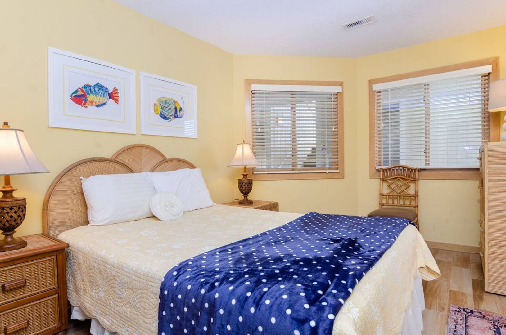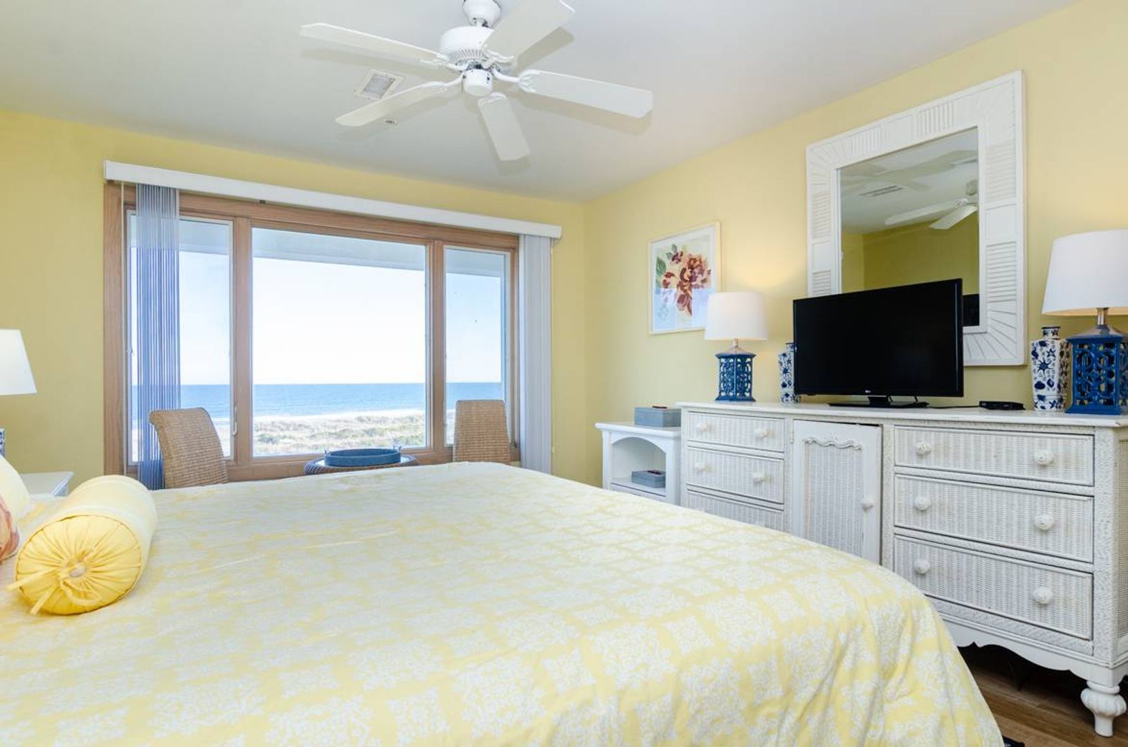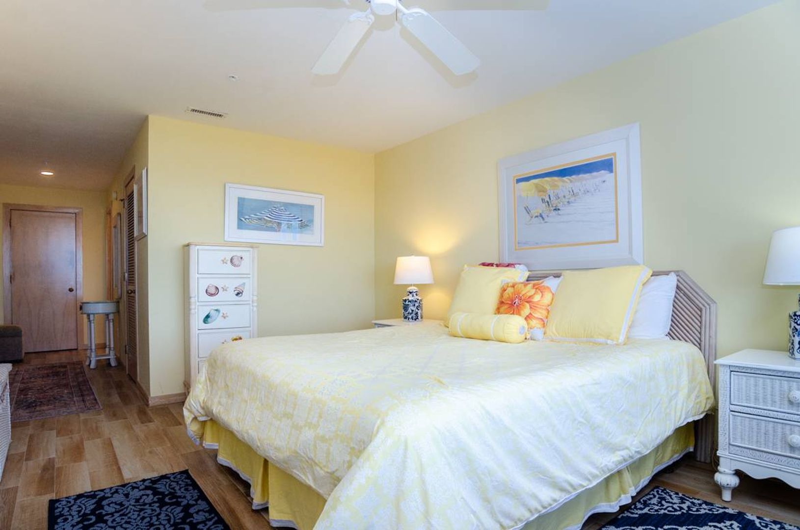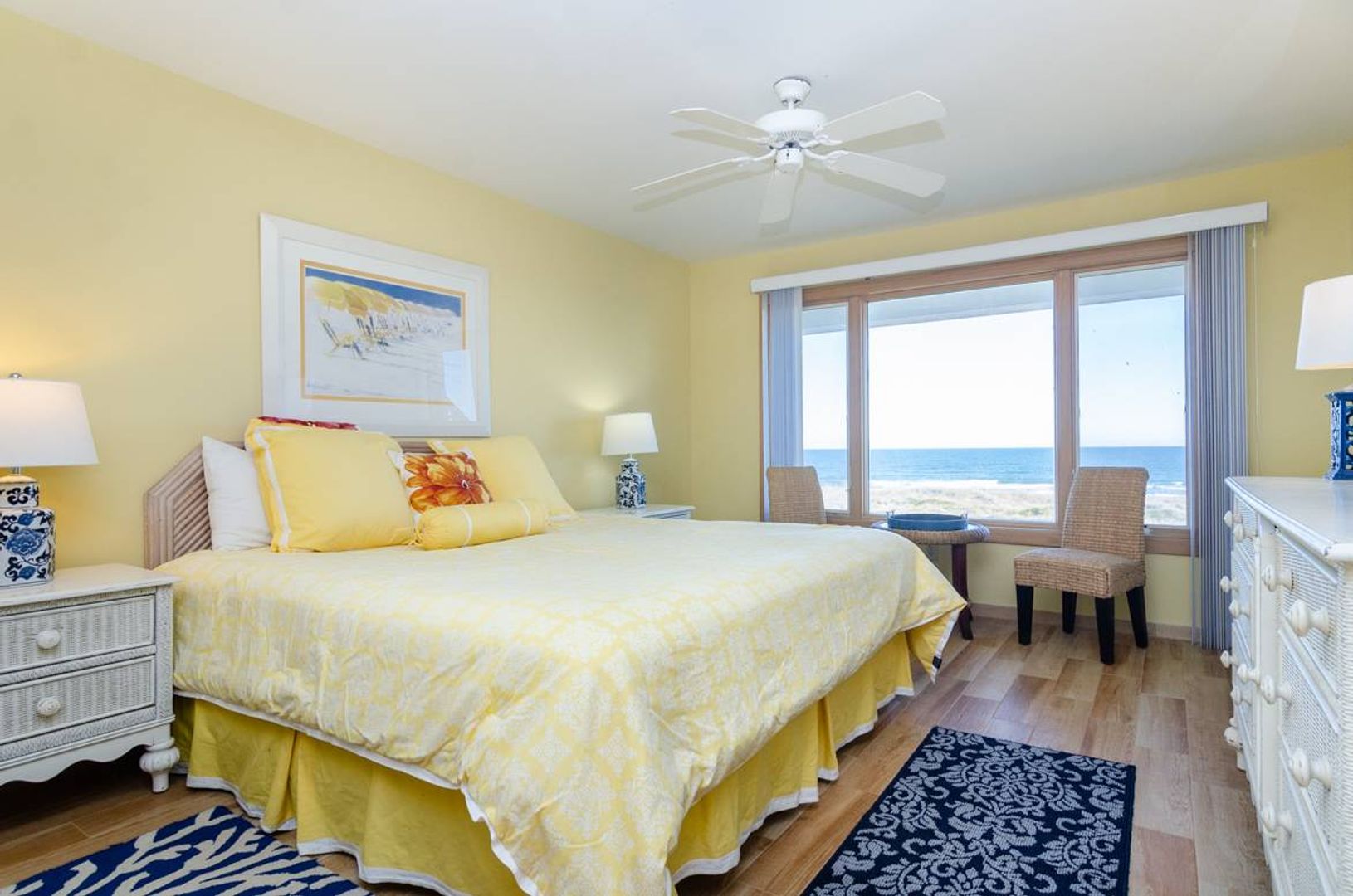 When returning from the patio to the living room on your right there are two French doors that open to the ocean front master suite. The master bedroom has a king size bed, spacious ensuite bathroom with a walk-in shower, and a sitting nook where you can read a book while enjoying the beautiful ocean view.