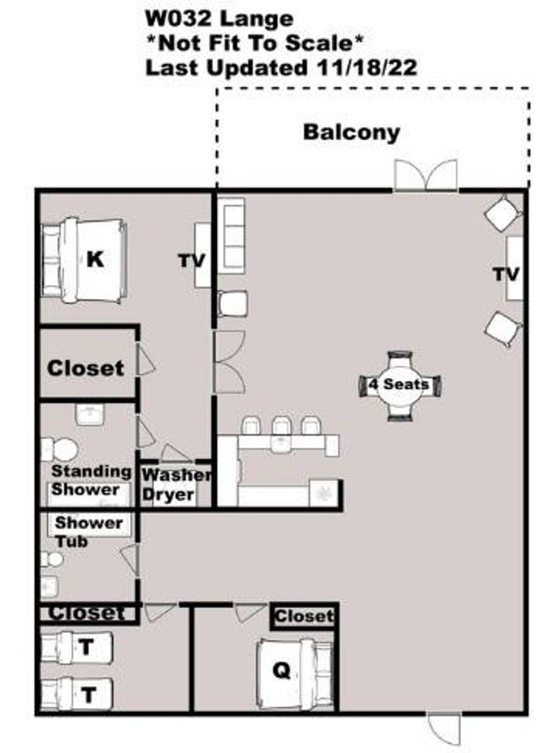 Bedding Configuration: 1 King, 1 Queen, 2 Twins