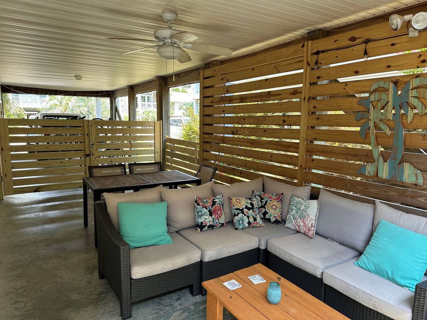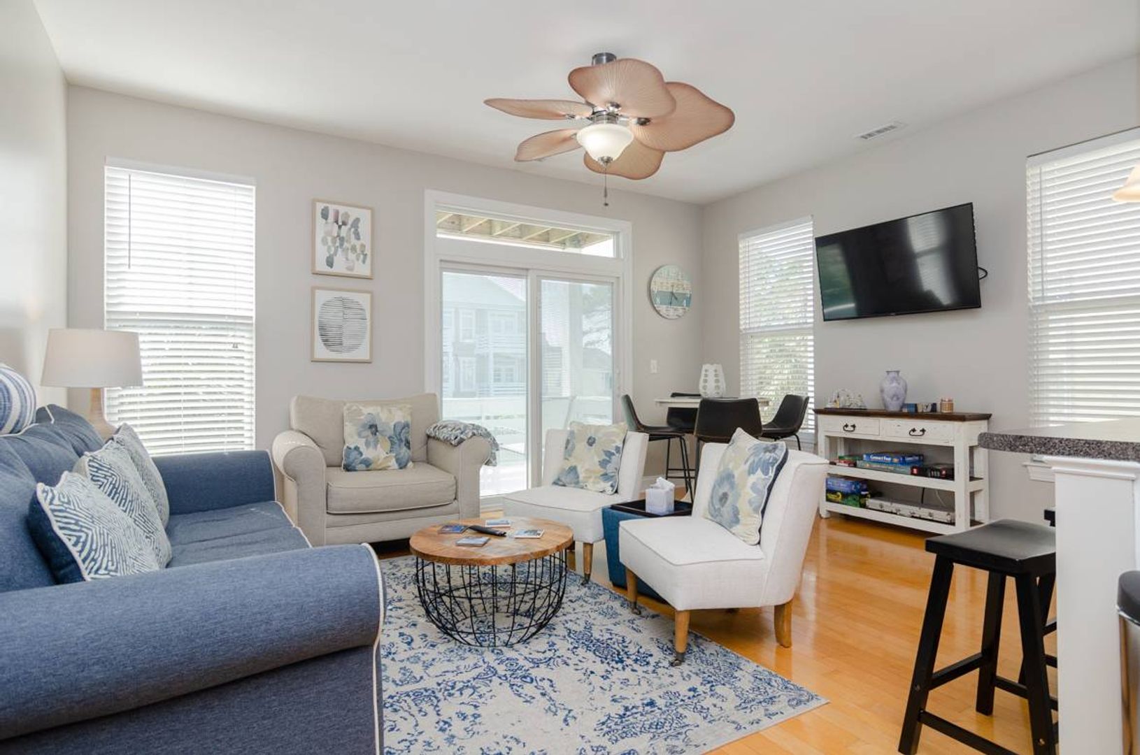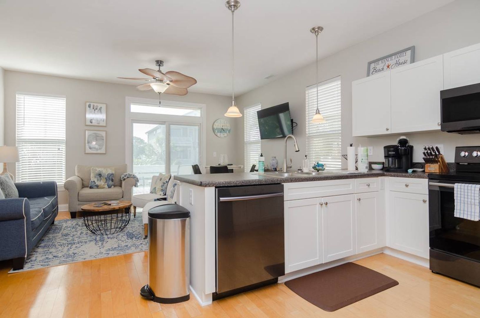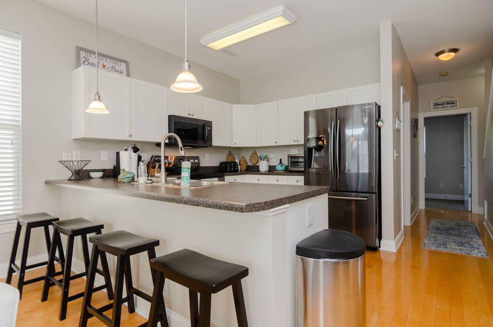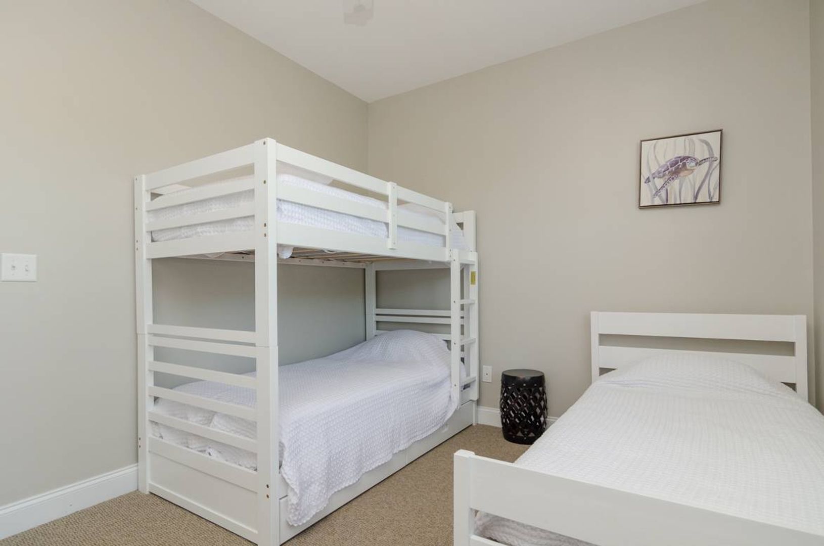 Tucked away on a quiet cul-de-sac and only a few short blocks to the beach, this 3-bedroom, 3-bathroom, pet-friendly townhome is sure to make a wonderful first impression. The first living level of this townhouse greets you with a cozy open living space perfect for entertaining while preparing a meal in the well-equipped kitchen. This home boasts Smart TVs and clean open spaces, along with a fenced in yard and outdoor shower. Down the hall there is a bedroom with a Queen bed and a full bathroom. The upper level of this property has a room with a twin bunk bed plus a twin and a full bathroom. The beautiful master bedroom has a King-sized bed and private on suite bathroom. Balconies on both living levels are great for sipping a beverage while watching the sun set! There is a sleeper sofa in the den if you need the extra bed. The furnished outdoor living area that really makes you soak up the island life. There is an exterior security camera located on the front door (doorbell camera).