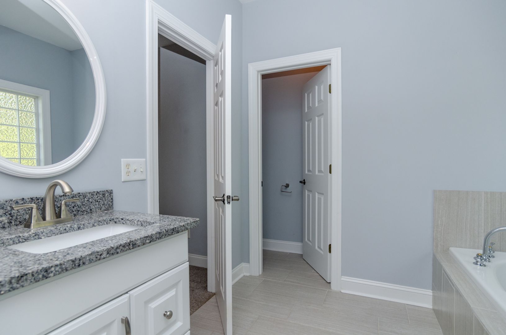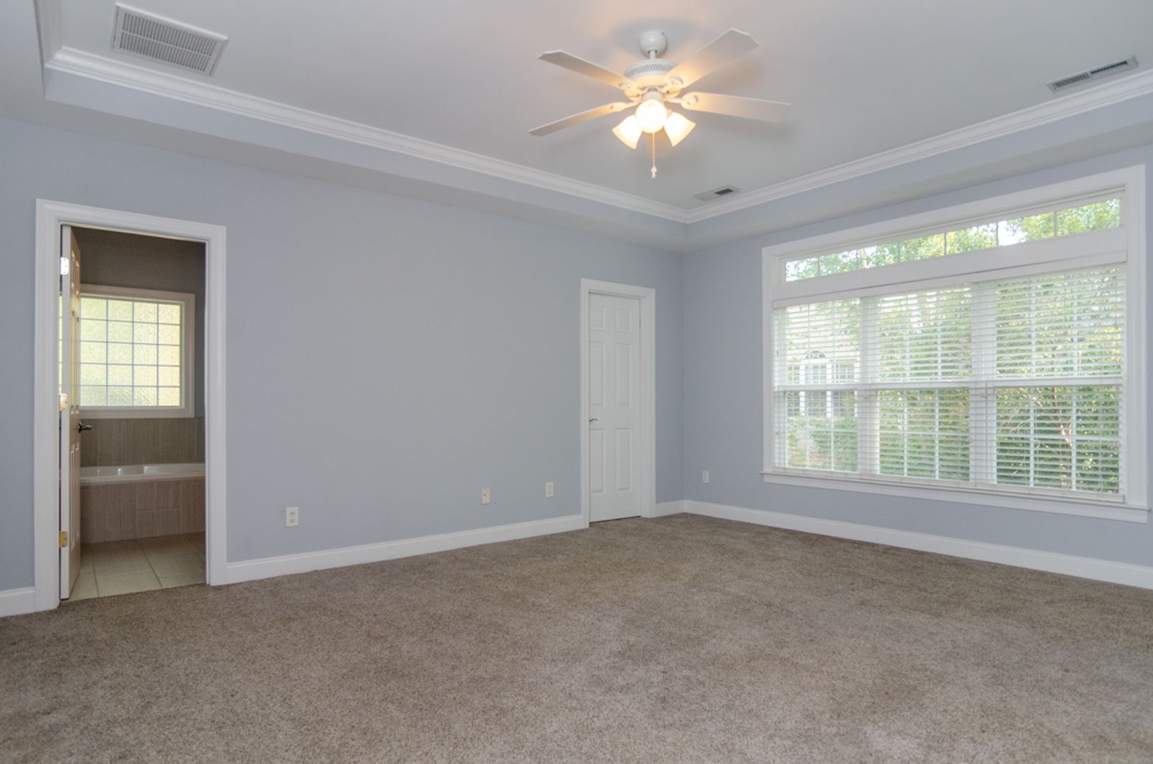 Inside, you’ll find a thoughtfully designed split floor plan featuring three bedrooms and two full bathrooms. The spacious primary suite is a true retreat, complete with a large walk-in closet and an en-suite bathroom offering dual vanities, a soaking tub, and a separate shower. The open-concept living, dining, and kitchen areas feel bright and airy with 9+ foot ceilings and abundant natural light—perfect for both relaxing and entertaining.