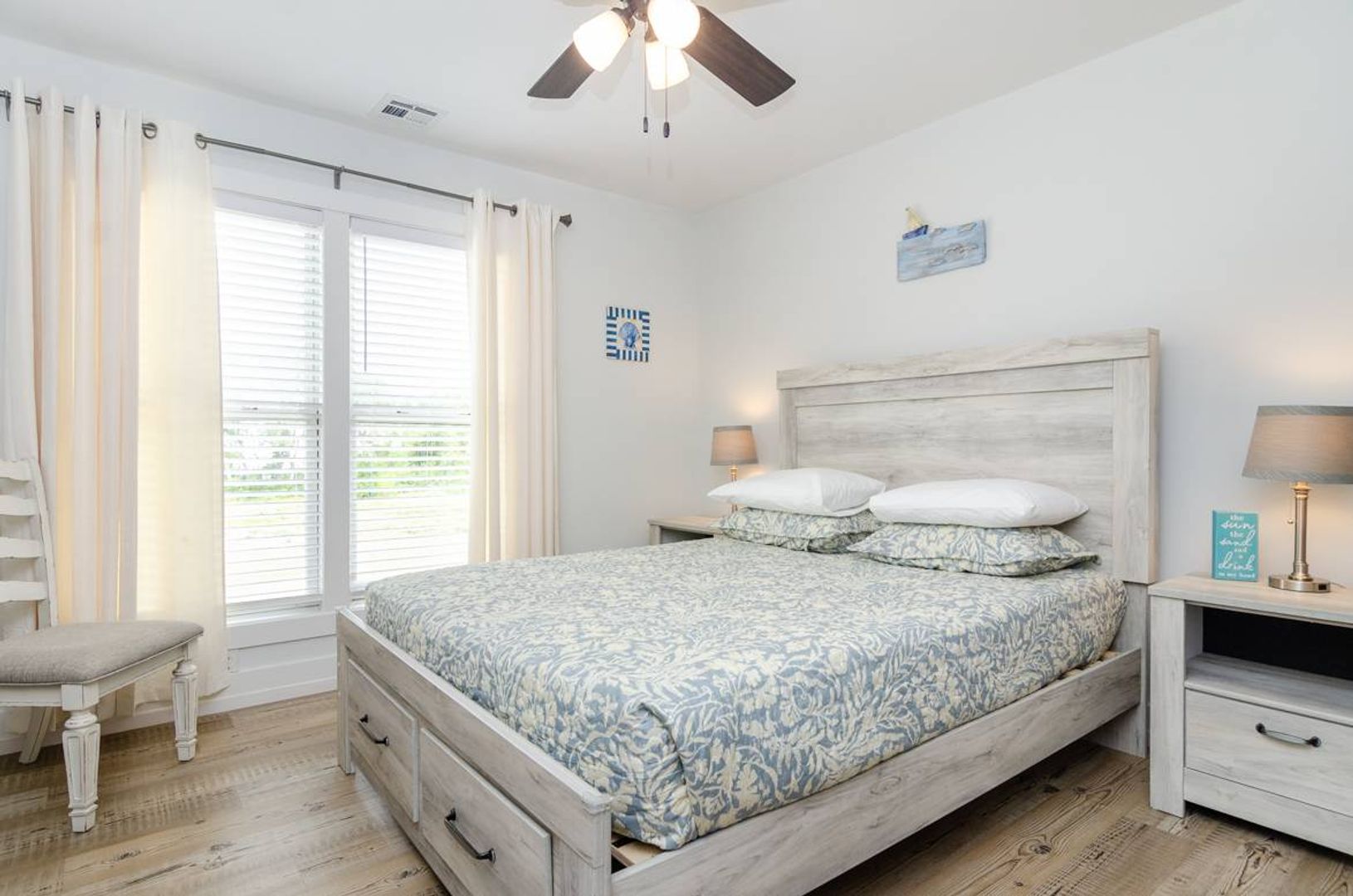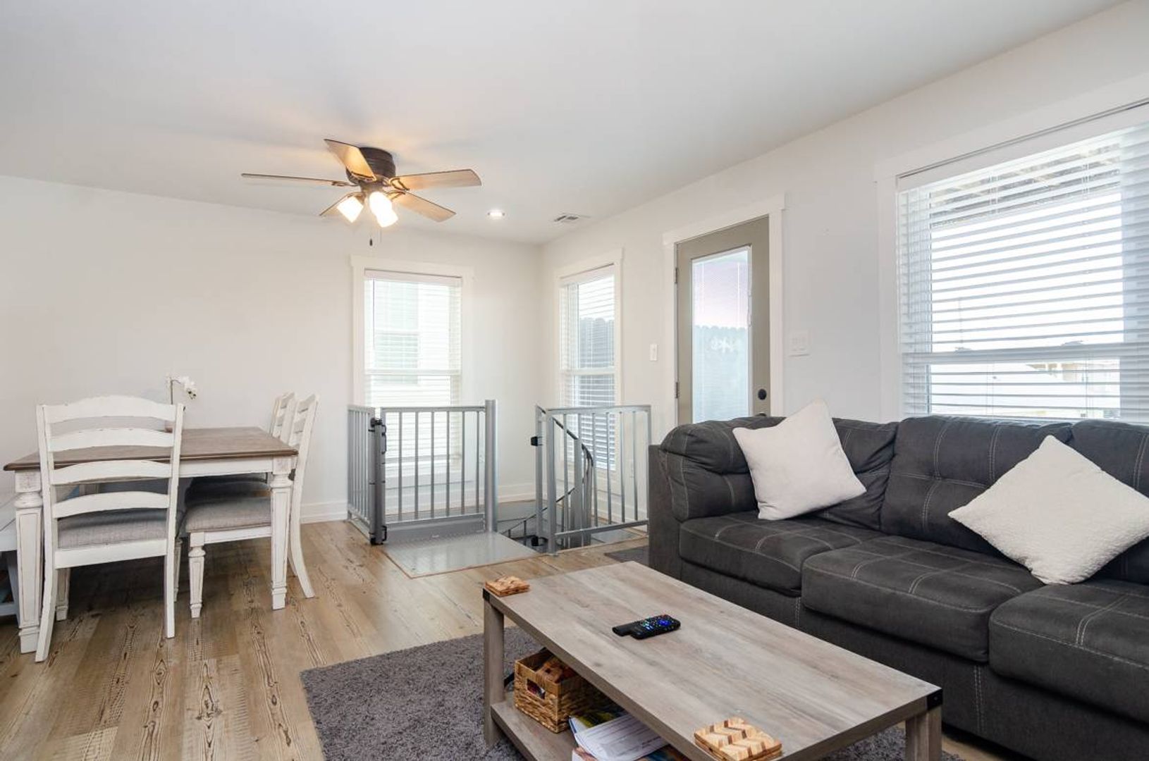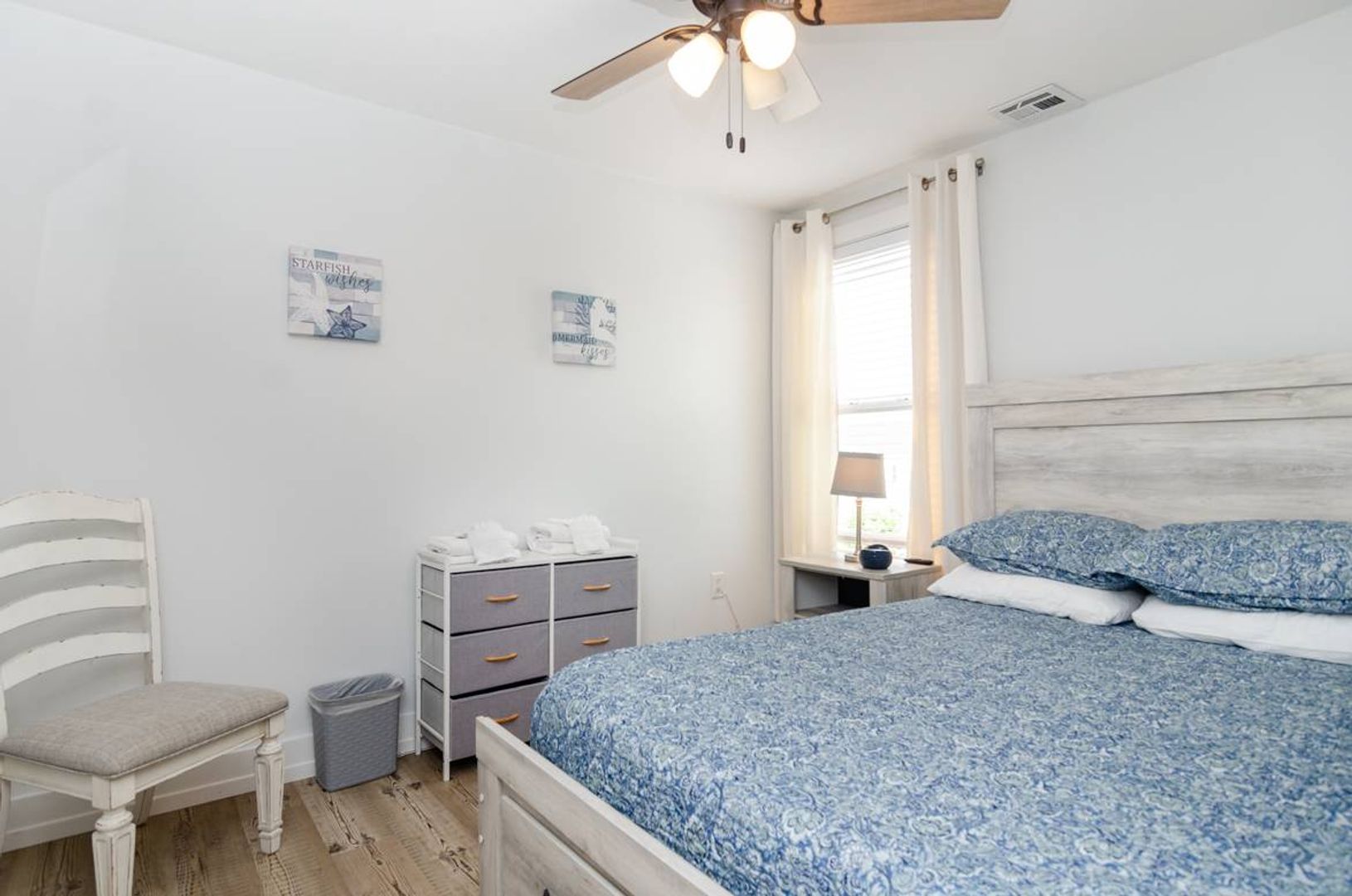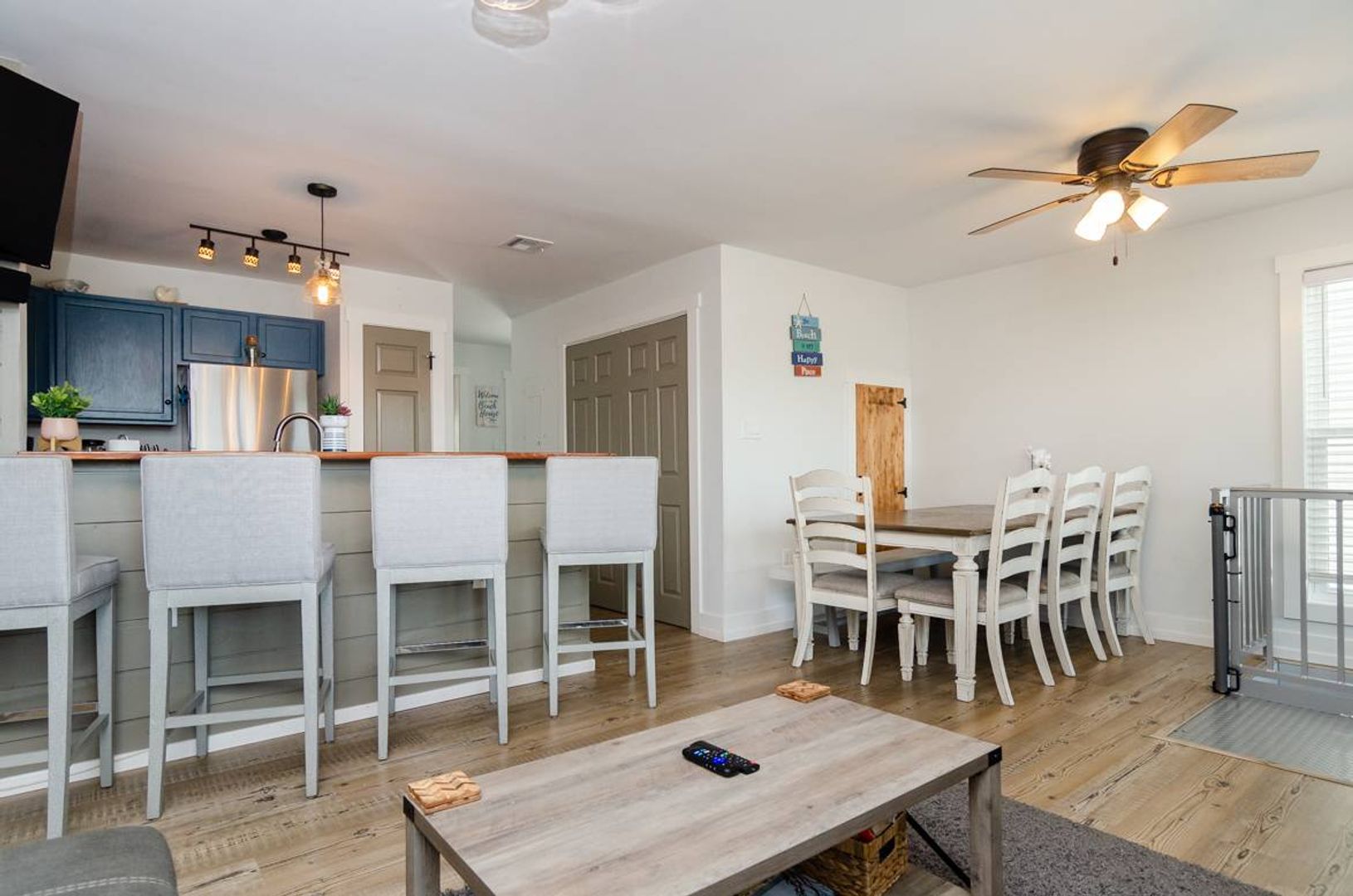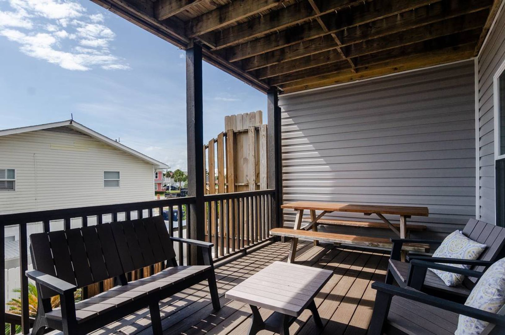 This 3-story townhome is just a short walk to the ocean. With 4 bedrooms, 4 bathrooms, ample space to spread out, this updated home is sure to check all your boxes. The ground level is extremely versatile and offers a pyramid bunk bed with a twin over a queen bed, a stand-alone queen bed, and a futon sitting area that overlooks the television. There is a full bathroom attached to this suite. Outside you will find a fully fenced backyard which makes this home ideal for pets! Enjoy grilling out in the evenings and dining at the picnic table. Upstairs you are welcomed by the gracious open floor plan that creates a wonderful family room. The beautifully updated kitchen is well stocked and will surely make meal preparation a breeze. There is also a guest room on this living level that offers a cozy queen-sized bed and access to a full bathroom. The third floor of this home houses the spacious primary suite which includes a plush king-sized bed, private un suite bathroom, and access to the deck. The deck shared access with the nearby queen guest room.