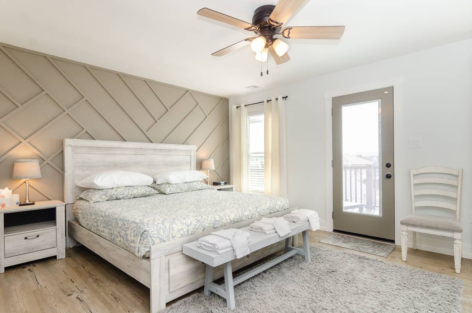 Bedding Configuration: 1 King, 3 Queen, 1 Pyramid (Twin/Queen).